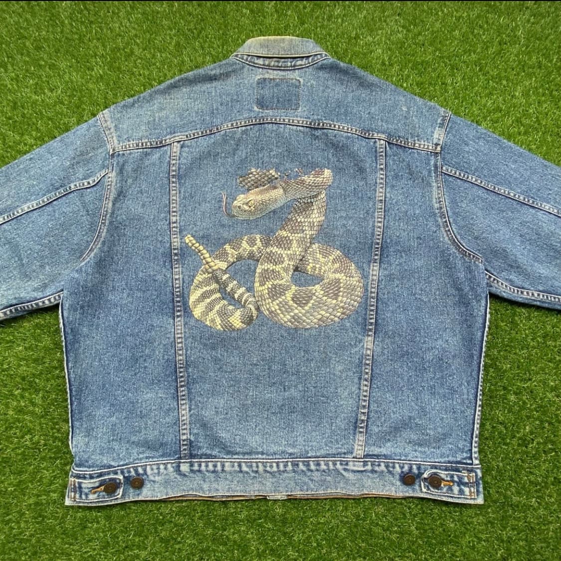 구제에서 15만원 상당에 구매했습니다 리바이스 70507-4890 제품이구요 뒤에 뱀 있는 자켓은 인터넷상에선 유일합니다 2달정도 입었습니다 181/73 이구요 105~110 입습니다