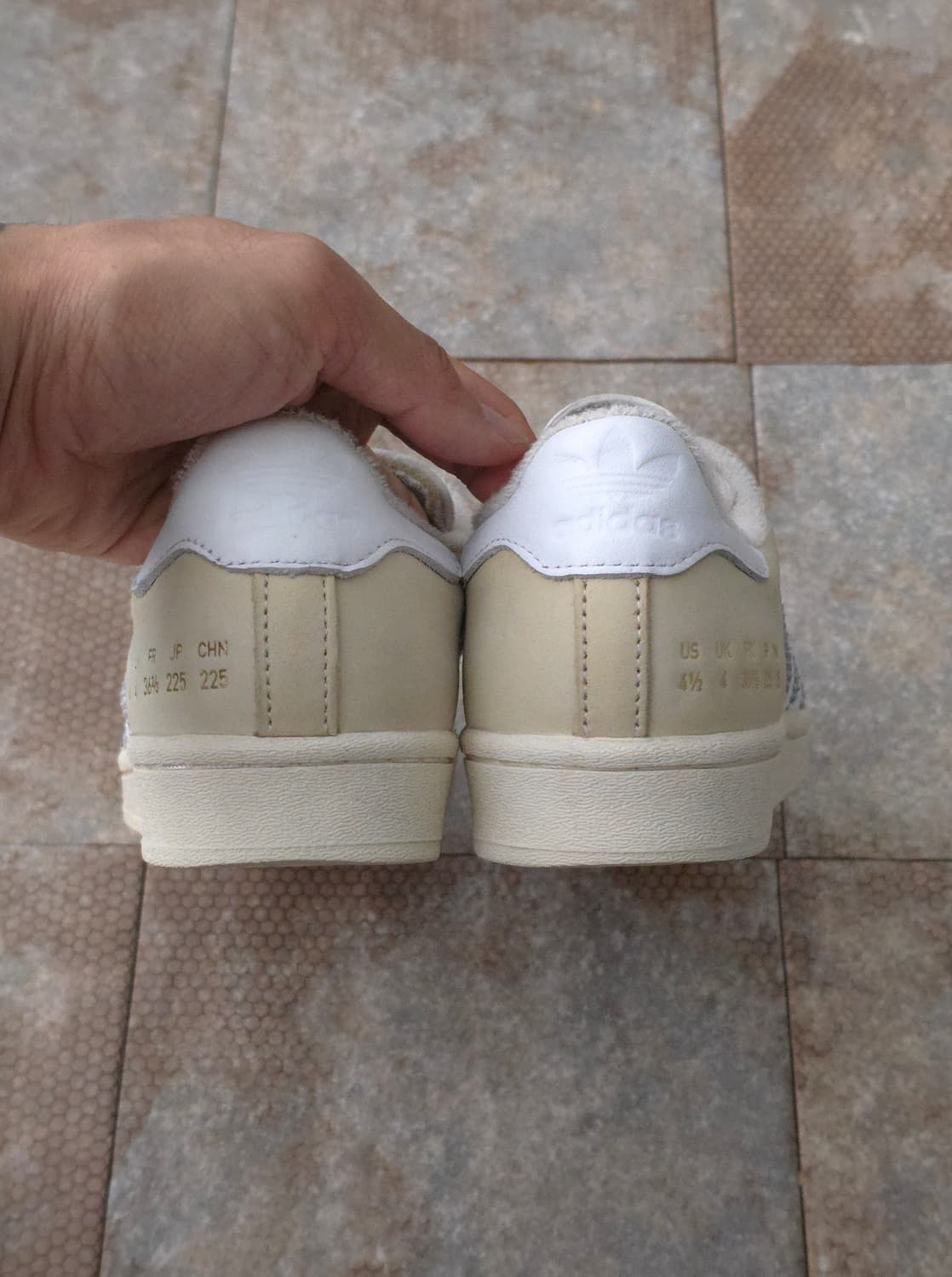 Size - 225(표기사이즈) - Comment 데일리용으로 신기좋은 아디다스 슈퍼스타 크림 화이트 모델입니다. -세탁 완료한 제품입니다. -상태:7.8/10(새상품 기준) 사용감(사진참고)