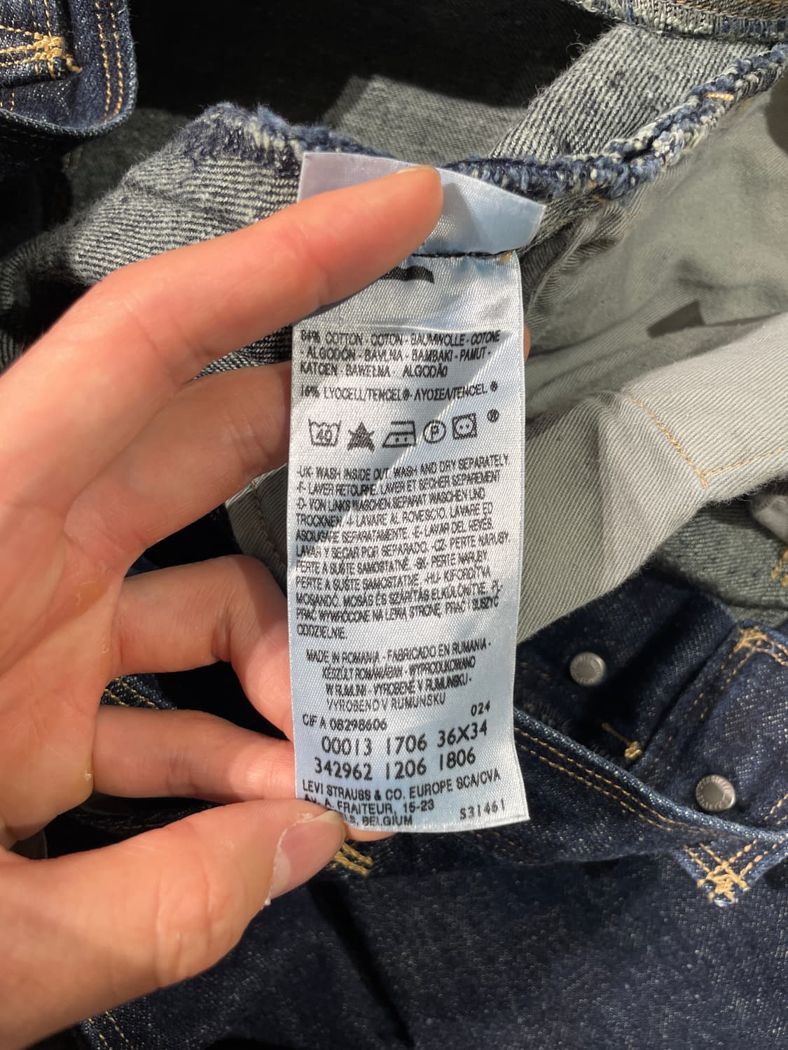 리바이스 엔지니어드 진청 데님 팬츠 사이즈 36x34 허리단면 47 밑위단면 27 허벅지단면 30 기장단면 98 밑단단면 21