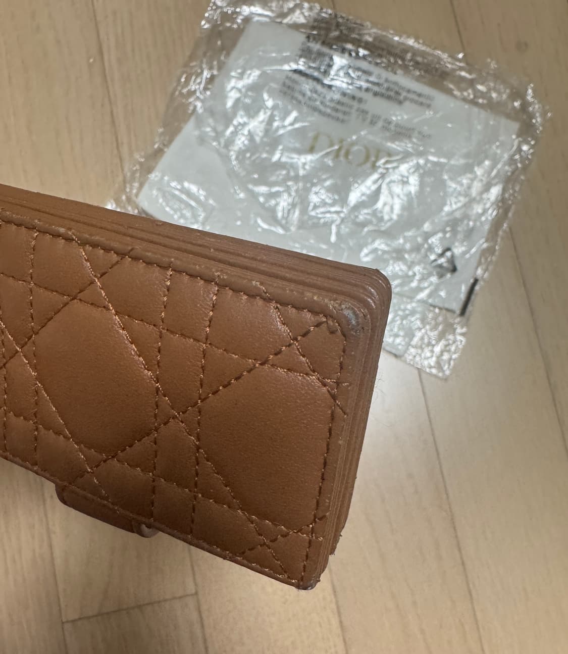 레이디 디올 까나쥬 아코디언 지갑 카멜 색상입니다 램스킨 소재 안쪽에 디올로고 각인 및 반대쪽에 숫자 각인 정품만 취급해요 사용감은 사진 참고 구성품은 사진에 보이는 것만 있어요 편하게 쓰실 분