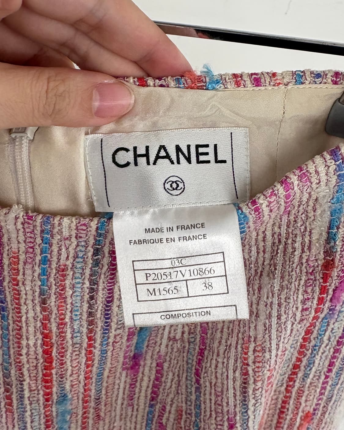 샤넬 핑크 멀티컬러 CC마크 트위드 미니 스커트 사이즈 38 허리단면 28 허벅지단면 43 기장단면 39