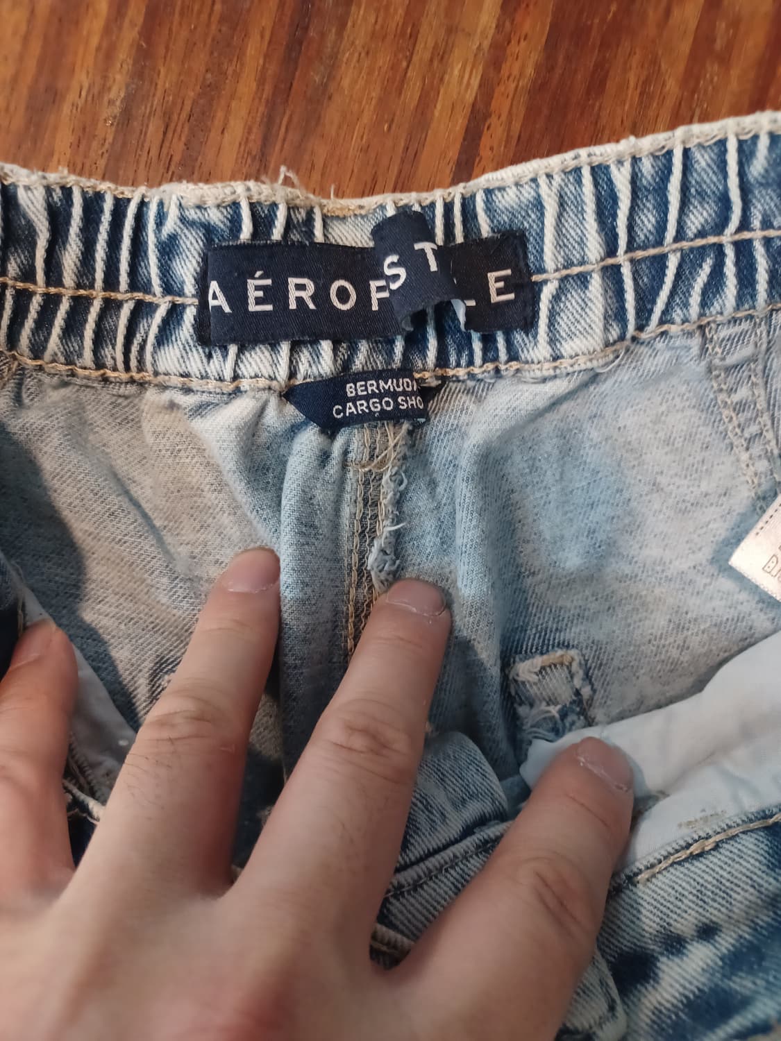 • 에어로포스테일 멀티포켓 연청 버뮤다 데님반바지 s