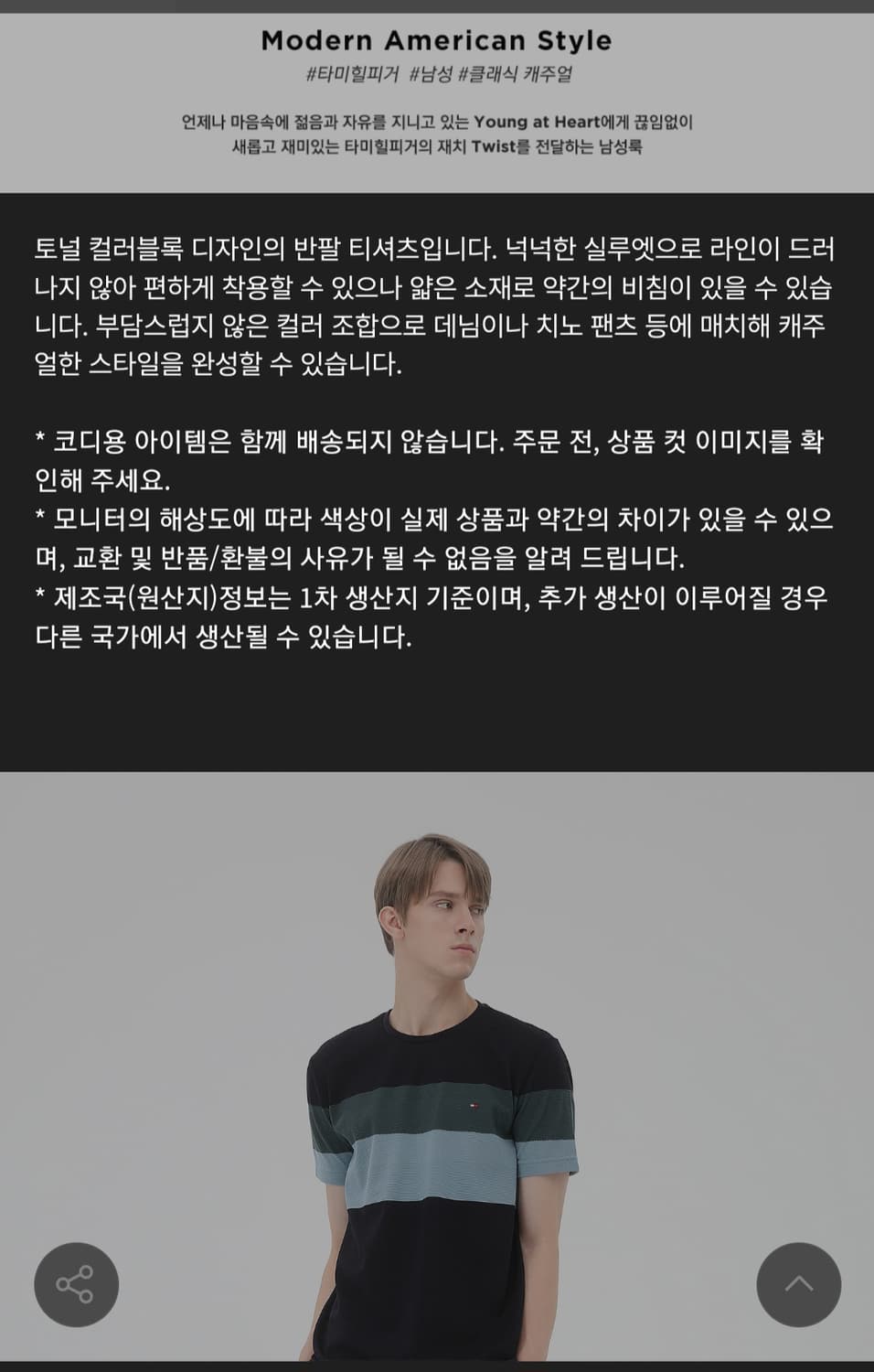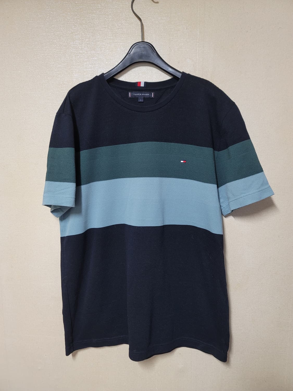타미힐피거 토널 컬러블럭 반팔티 팝니다. 사이즈 L 가슴단면 55 총장 70 추천사이즈 100(여유있는) 105 정사이즈 한섬수입 정품 얇은 니트질감 뒤쪽사진 모델핏,설명 네이비+그린 색상 하자없이 매우 깨끗한 상태입니다. 구매시 스팀드레서로 스팀드라이후 섬유향수 향균탈취 뿌린후 이쁘게 포장해서 드리겠습니다. 택배시 배송비 별도 4000원 입니다.