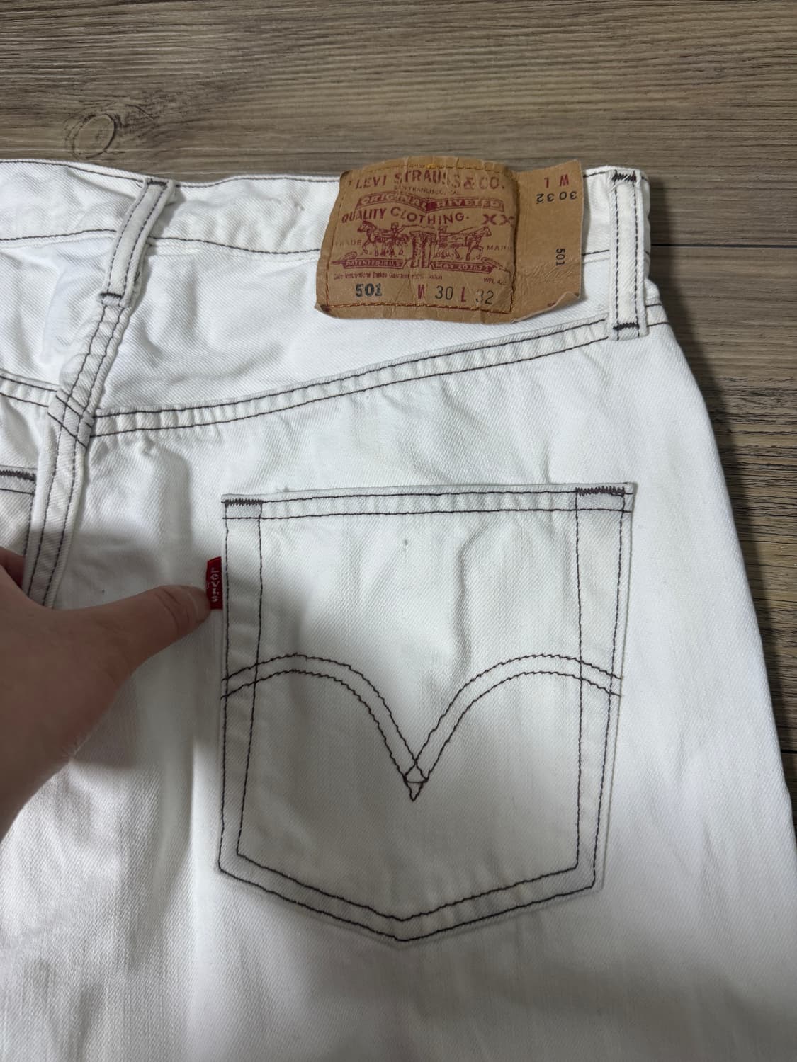 Brand: Levi’s 697 Size: 30x32 (허리 39~40 밑 위 27~28 허벅지 32~33 기장 101~102 밑단 21~22) 스판기 있습니다. Condition: 7/10 Product: 00s 리바이스 501 화이트 코튼 팬츠입니다. 빈티지 제품 특성상 교환 및 환불은 어렵습니다. 빈티지한 컨디션으로 상태에 예민하신 분은 구매를 피해주시면 감사하겠습니다.