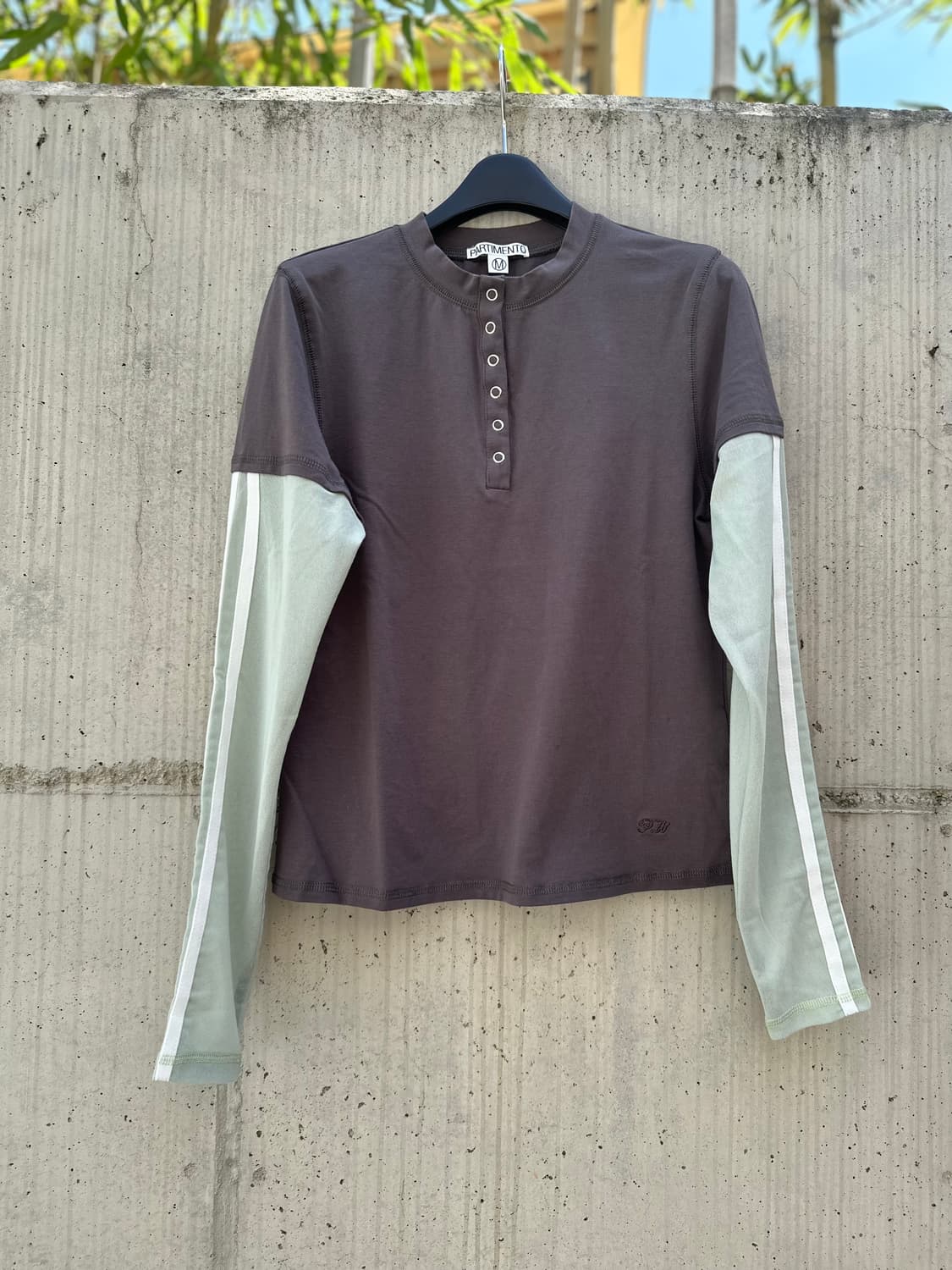 -Detail- Partimento 우먼 레이어드 헨리넥 롱슬리브 세미크롭 실루엣의 헨리넥 슬리브 제품입니다. 숏슬리브+ 롱슬리브 배색 레이어드 디자인,슬리브의 2라인 스트라이프 포인트로 스포티한 느낌이고, 코튼, 스판덱스 혼방으로 높은 신축성과 소프트한 터치감이 돋보이는 제품입니다. -Condition- 아주 좋은 상태입니다. -Size- 총장 54.5 - 어깨 37 - 가슴 43 - 소매 59.5 (측정방법에 따라 1~2cm의 오차가 있을수 있습니다) -모든 상품은 세컨핸드 상품이므로 교환 및 환불은 불가능하니 신중히 구매 부탁드립니다 :)