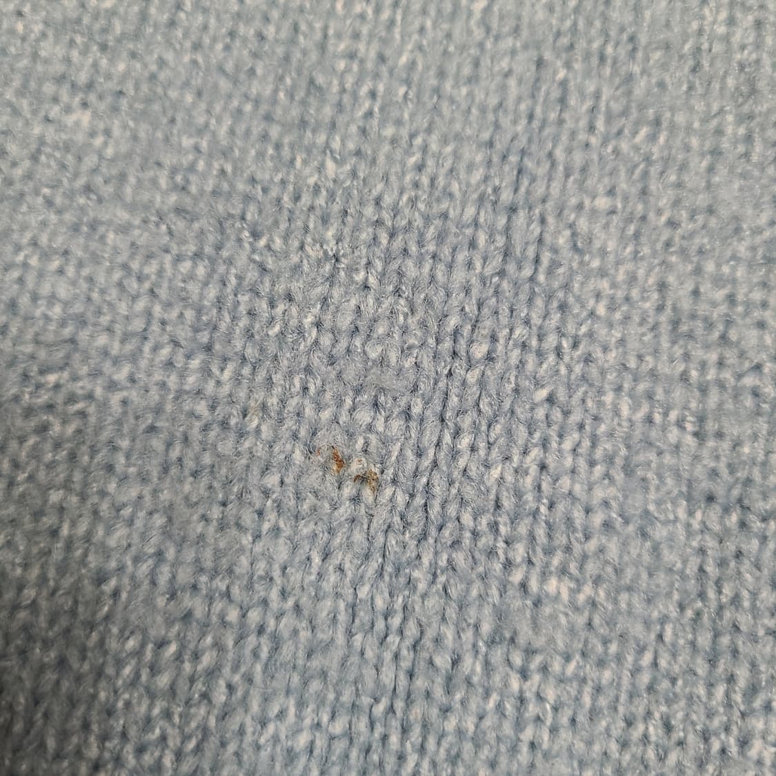 착용 ❌️ 앞면에 부분부분 이염이 있어서 확인 부탁드려요! 사진만큼 잘 보이지는 않아용 전체샷이랑 색감 비슷하고 맨살에 입어도 안 따가워요 😆 보풀은 거의 없고 도톰한 소재입니당 가슴 53 목부터 소매 64 총장 60 64