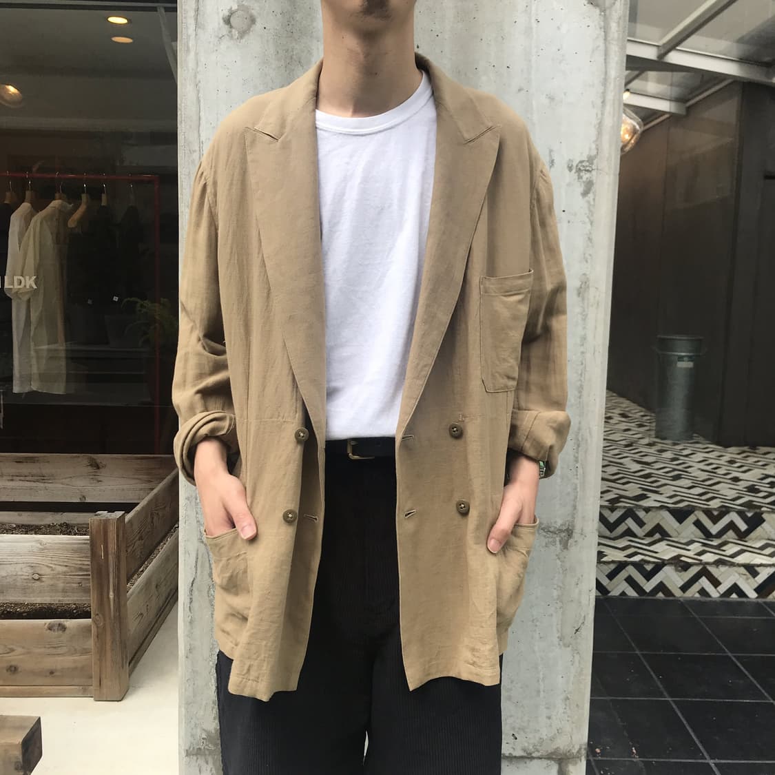 KAPTAINSUNSHINE ······ #캡틴선샤인 21SS 린넨 실크 리비에라 더블 브레스티드 자켓 입니다. 실크를 사용한 메쉬 소재의 파나마 직물. 밀리터리 웨어로부터 착상을 얻어, 강연사와 리넨을 맞춘 것으로, 시원한 감촉을 표현. 워싱가공 까지 마무리하며 그로인해 겉면에 입체감있는 촉감과 살결에 닿았을때 기분좋은 감촉의 패브릭. 옛 프랑스 요리사 자켓을 모티브로한 여유있는 박스 실루엣이 특징입니다. 사이즈감 자체가 여유있게 나와 롤업해서 가볍게 툭 걸치기에도 훌륭한 모델. 룩북 사진처럼 반바지에도 걸쳐보시길, 감사합니다 :) ······ - #KAPTAIN SUNSHINE Double-Breasted Riviera Jacket - Size : 40 [어깨53.5 가슴64 소매63 총장75.5 / 추천사이즈 105~ ] - Condition : 8.5/10 - Price : 28.5 [ 현지 구매가 ¥58,300 ] ······ - Item Code : 6934 - 모든 제품은 서울 문래에 위치한 '모이치샵' 쇼룸에서 직접 보실 수 있습니다.