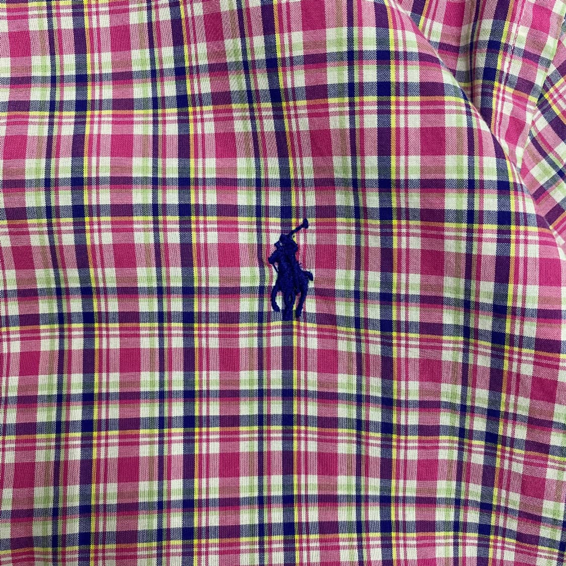 폴로 랄프로렌 퍼플포니 체크무늬 그린 셔츠 L