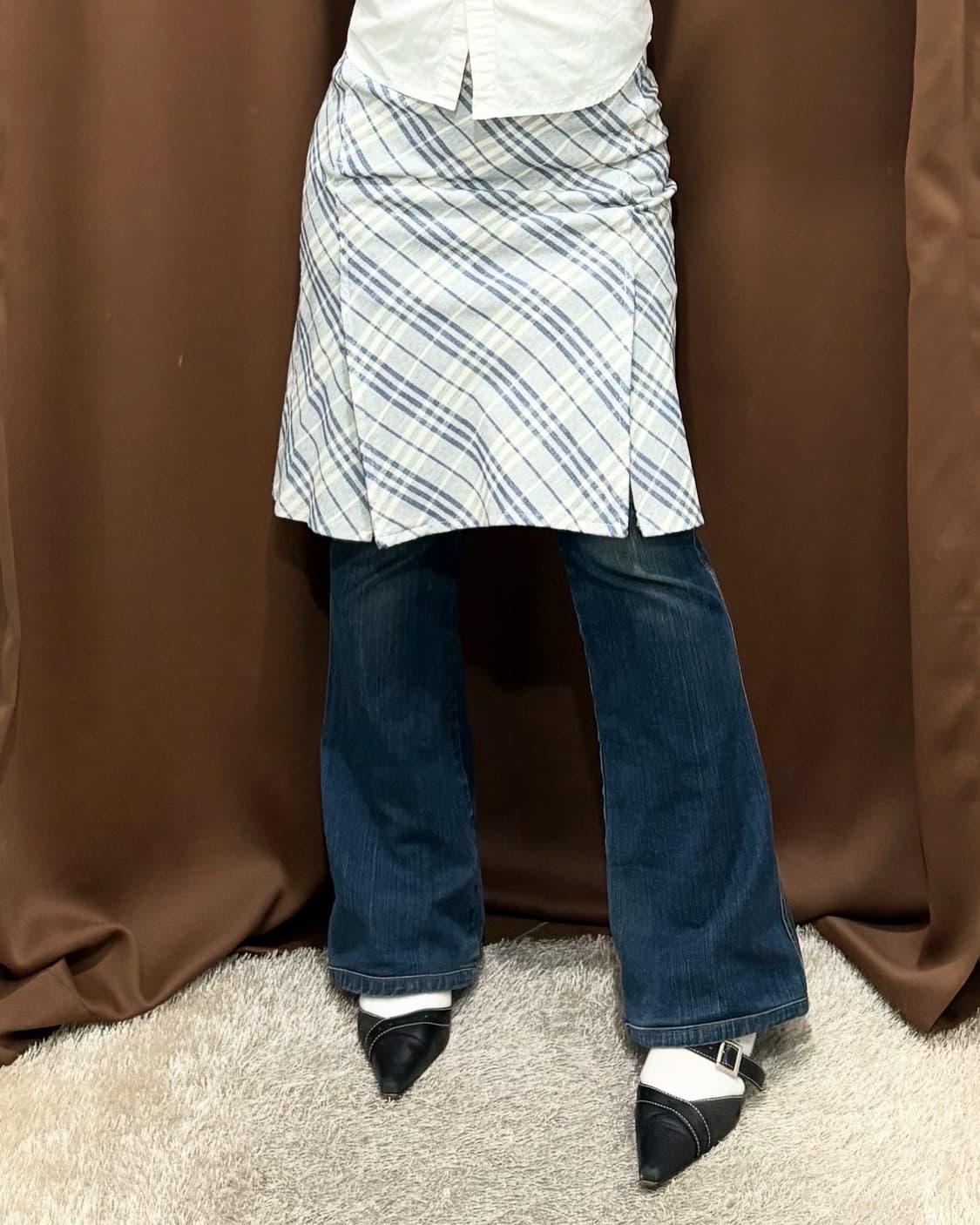 • 버버리 블루라벨 미디 체크 스커트 치마 36사이즈 27인치