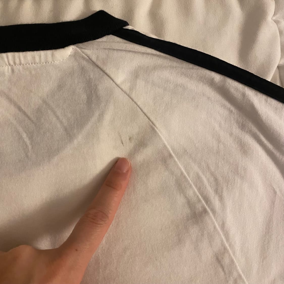 아디다스 반팔티(화이트) ✔️가격 2.0 ✔️사이즈 가슴 52 총장 70 ✔️특이사항 아주 미세한 구멍 하나와 뒷면 미세얼룩 있어요! 사진으로 확인해주세요! 그 외 아주 좋은 컨디션🤍 ✔️모델사이즈 163/51 • • • ꪔ̤̮ 모든 상품은 하나씩이며 품절은 재입고가 없습니다. ꪔ̤̮ 하자나 이염은 특이사항에 표기해드리나 판매자가 미처 발견하지 못한 부분이 있을 수 있으니 예민하신 분들은 신중히 고민해주세요! ꪔ̤̮ 빈티지 특성상 교환 및 환불이 불가합니다. ꪔ̤̮ 실측사이즈는 2-3cm의 오차가 발생할 수 있습니다. ꪔ̤̮ 배송비 3000/제주 6000/2개 이상 무료배송💘
