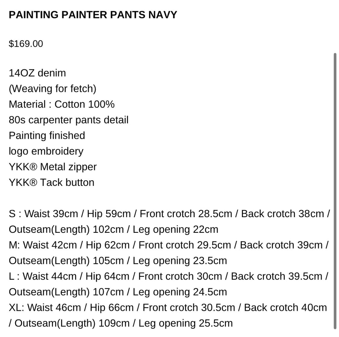1회 실착 후 보관만하고 있습니다. S사이즈 S : Waist 39cm / Hip 59cm / Front crotch 28.5cm / Back crotch 38cm / Outseam(Length) 102cm / Leg opening 22cm