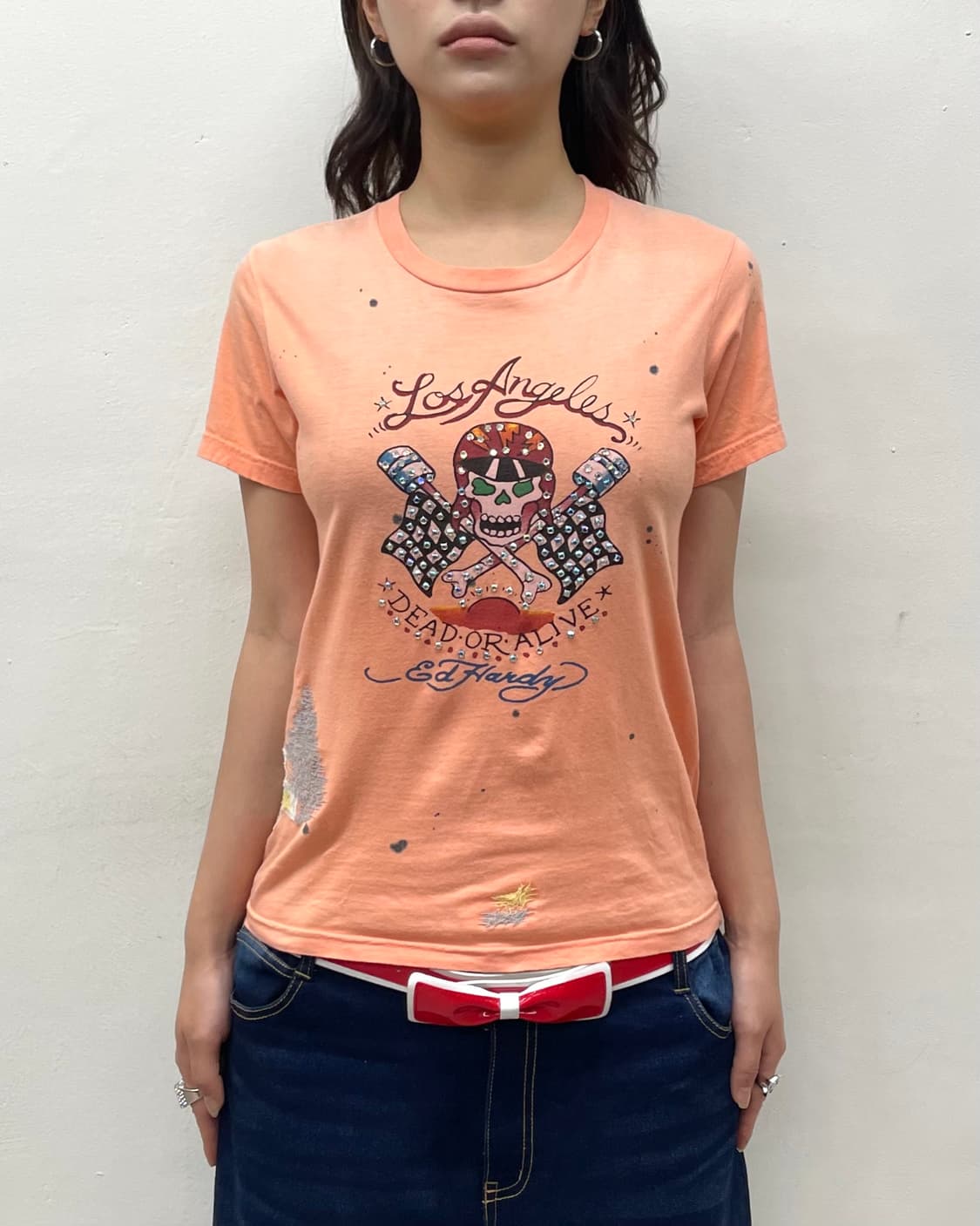 제품설명> "ED HARDY"사의 Skeleton Patchwork Orange T-shirt 제품입니다. -스켈레톤 프린팅 -실 패치워크 디테일 -큐빅 포인트 <measurement> shoulder : 39 chest : 42 sleeve : 15 length : 56 (cm) <Price> ₩30,000 -No Refund No Exchange- contact DM *빈티지 제품 특성상 약간의 사용감 및 오염이 존재할수 있습니다* #빈티지#티셔츠#반팔#에드하디