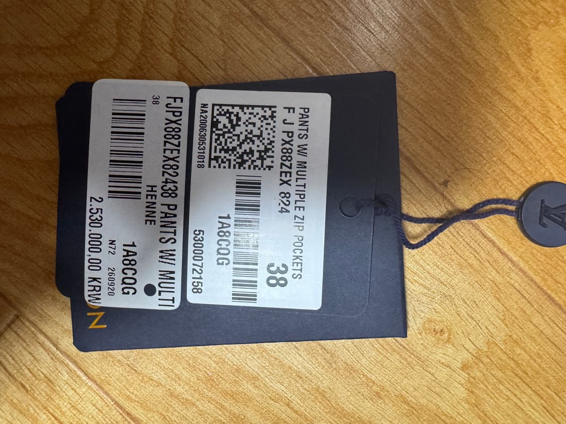 루이비통 멀티 지퍼 포켓 바지 블랙 색상입니다 광주신세계 루이비통에서 구매 사이즈는 38이고 실측 허리 40.5 / 길이 97 상태는 착용은 했지만 전혀 이상없습니다 여성제품인데 남성분도 실측보시면 착용 가능합니다 제가 남자인데 착용함 정가는 2,530,000원입니다