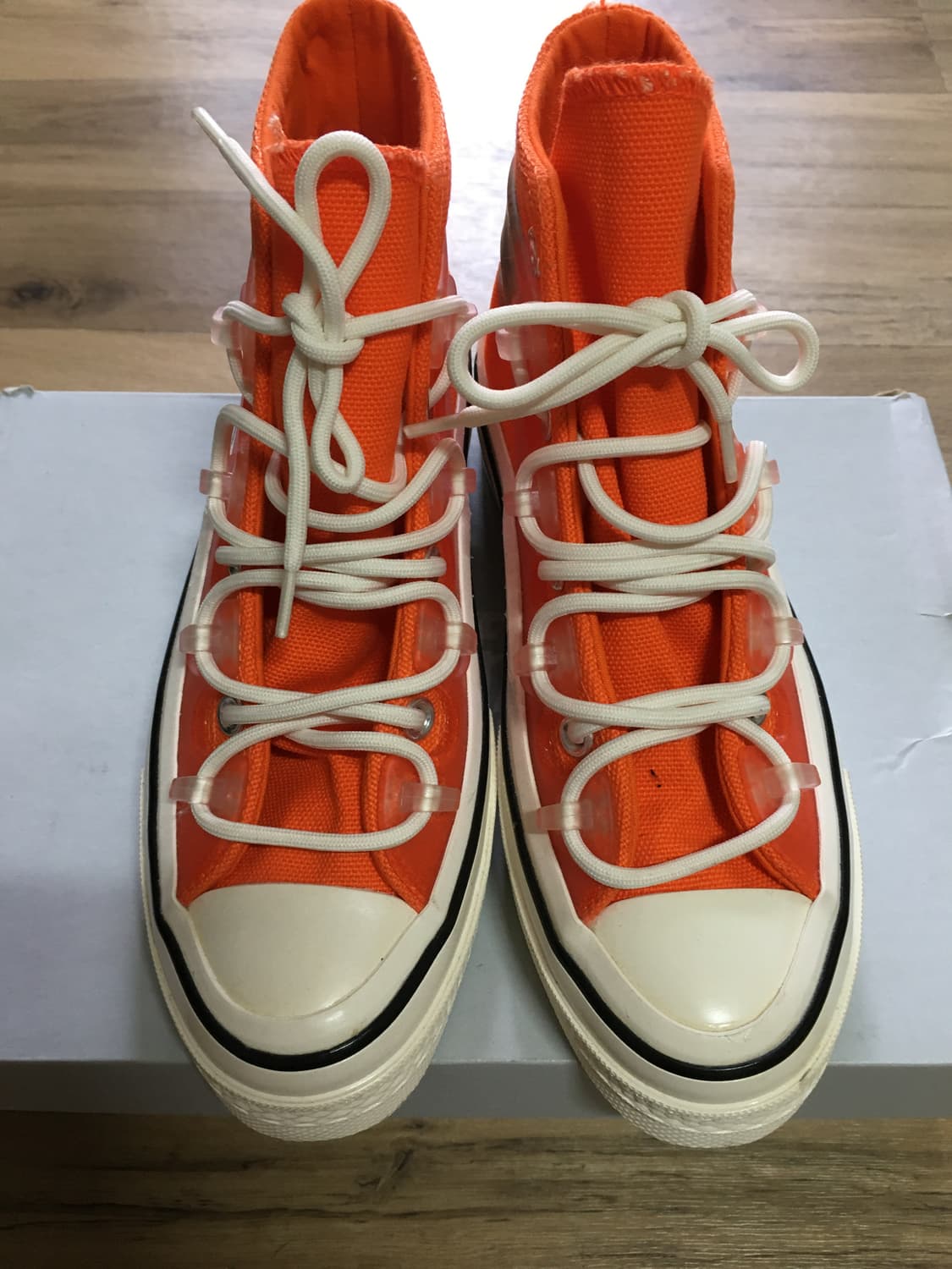 컨버스 x킴존스 유틸리티 하이에여 사이즈는 240 입니다 사진에 보시듯 몇번 안신고 보관만한거라 거의 새거에여