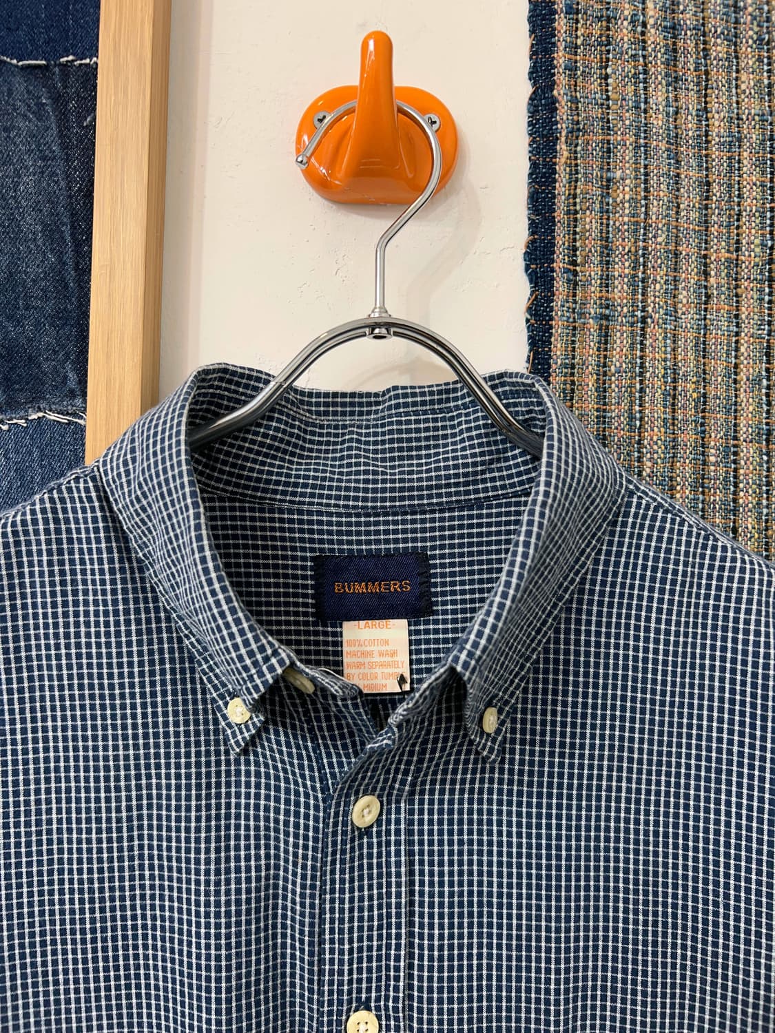 BUMMERS Pullover Checkered Shirt 버머스 체크 풀오버 셔츠입니다. 네이비톤의 슬럽면 사용으로 얇고 가벼운 원단감, 착용 시 스탠다드한 어깨, 넓은 가슴라인으로 단정하면서도 편안한 핏입니다. *컨디션 10/8 소소한 사용감 외 우수한 컨디션 *소재 면 100 *실측 (cm) 어깨 45 소매 24 가슴 59 총장 74/78 *추천사이즈 국내남성 95~100 국내여성 44~66 - 일본 기반의 아메리칸 캐주얼, 빈티지의류 영감을 바탕으로 90년대 미국의 데일리 웨어를 현대적으로 재해석한 디자인을 주로 간결하면서 포인트있는 디테일을 사용하는 로컬 기반의 브랜드 BUMMERS