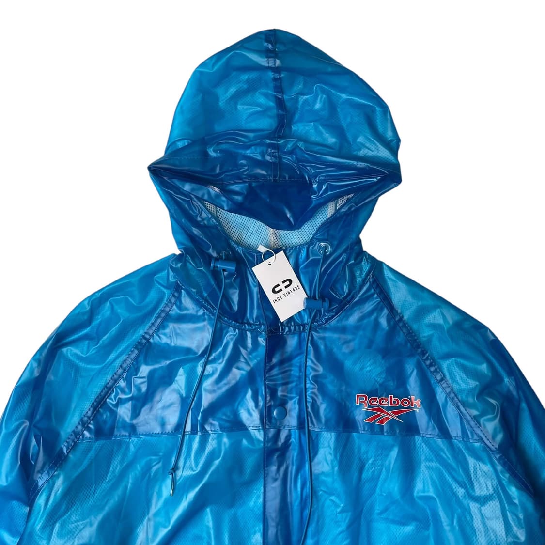 Reebok pvc zip up hoodie 입니다. 리복사의 pvc후드, 트렌디한 디자인에 reebok 레터링이 포인트인 자켓입니다. 사용감 있습니다. 어깨+팔 83 가슴 70 총장 72