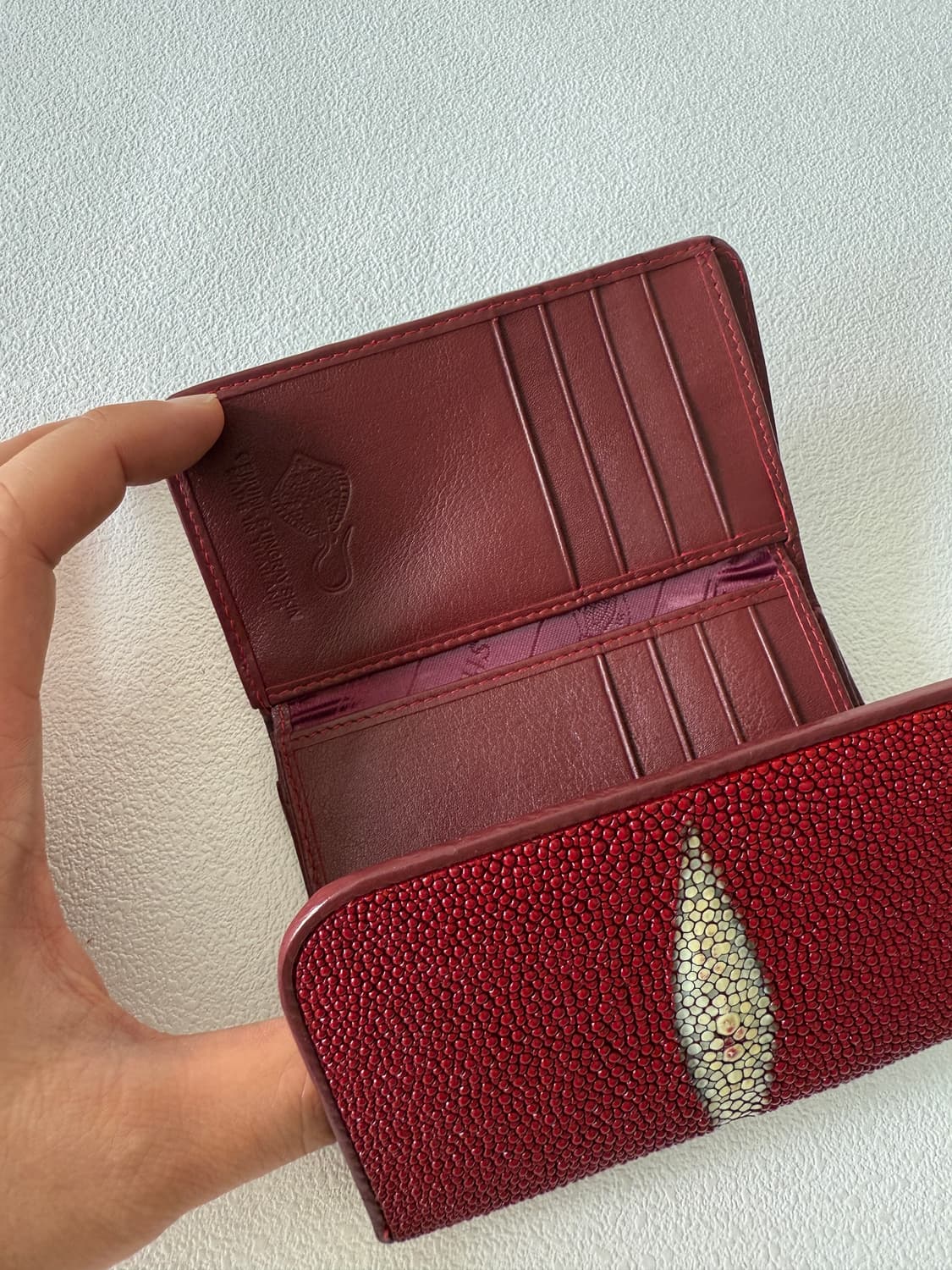 - 실측: 가로13 세로(높이)9 폭2 - 소재: 외부 가오리 가죽, 내부 소가죽 - 상태: B+, 전체적으로 컨디션 좋음, 사용감 정도 - 비고: 실측은 대략적인 사이즈감을 안내 드리기 위한 것 측정 방법에 따라 약간씩 차이가 있을 수 있습니다.