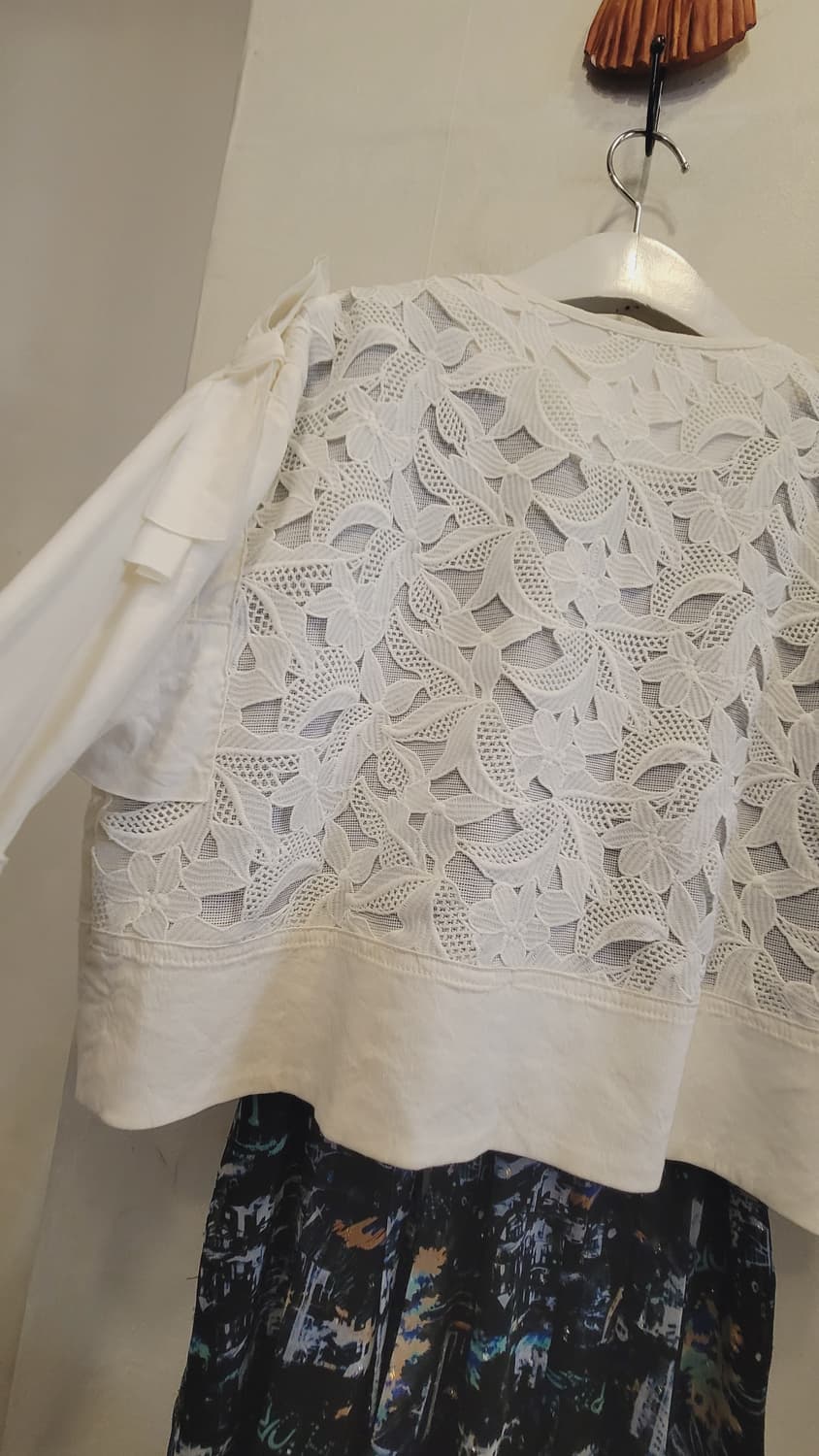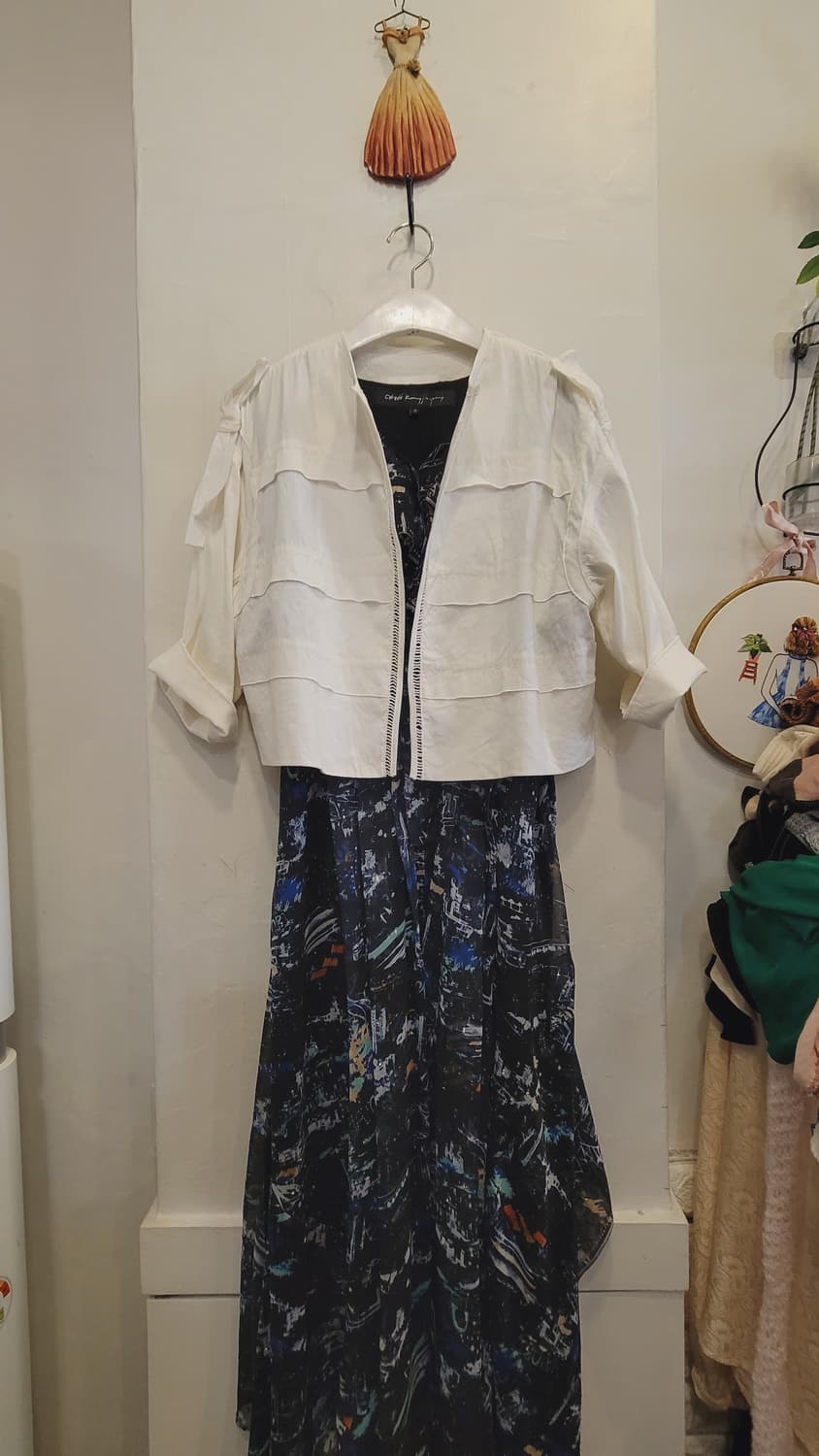 입금순 거래 . 구입예고사절 개별가격 상세설명 정독요망!!!! 챗팅은 구매결정 하신후에만 신중히!!! 감사합니다 ~^^♡ 미샤 레이스자수 린넨 자켓 55 오픈형 자켓으로66가능해요 자연스레 앞섶 마주하고 잰반품50 총장47 스판있는 레이온 린넨소재로 착용감 편하고 부드러워요 뒤는 자수레이스 어깨선 리본~^^ 상태좋습니다 배송비 4000