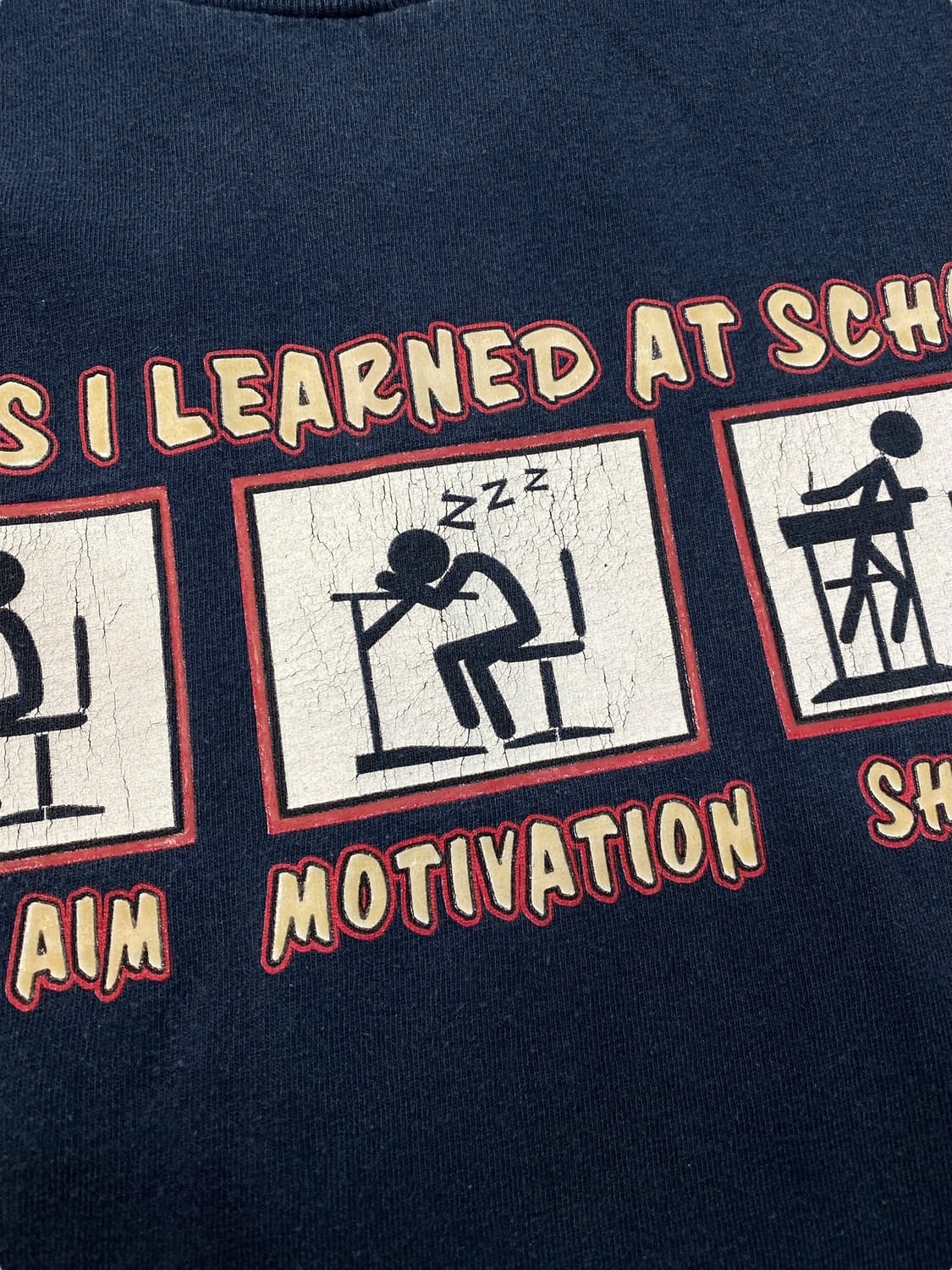 Tennessee River 'THINGS I LEARNED AT SCHOOL' T-Shirt 빈티지 반팔 티셔츠 입니다. - Made in Mexico - Cotton 100 표기 사이즈 L, 추천 사이즈 100-103 입니다. 가슴 54, 어깨 51.5, 소매 19, 기장 69 (cm)