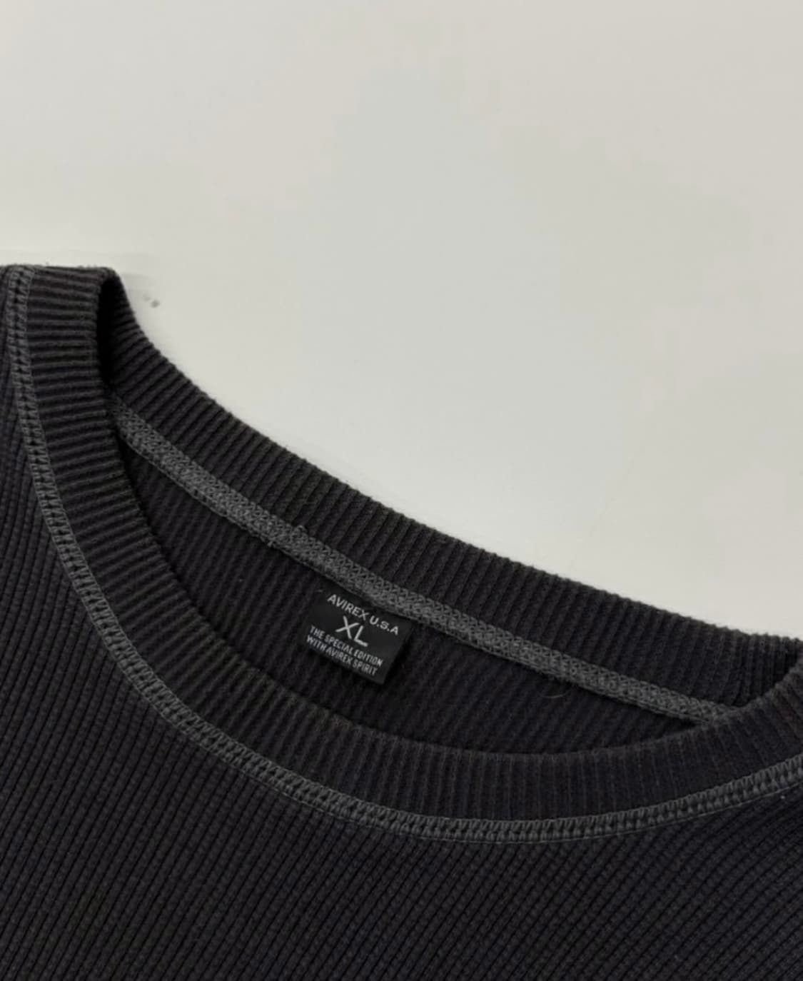 Avirex 아비렉스 차콜컬러 와플 롱 슬리브 Price: 65,000 Size : XL - 가슴단면 50 총장 71 • 아비렉스 특유 빈티지한 프린팅이 돋보이는 디자인의 롱 슬리브 입니다. 착 용시 유연한 실루엣이 편안한 와플 슬리브로, 자연스러운 사용감 외 큰 하자 없이 컨디션 우수합니다.