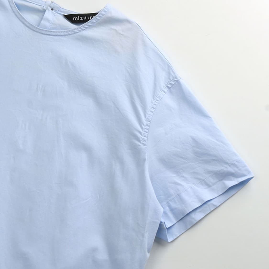 mizuiro ind의 블라우스 입니다 제팬 메이드 제품으로 브랜드 특유의 깔끔한 디자인과 좋은 소재가 매력적인 제품으로 넉넉한 실루엣에 드레이프 되는 핏감이 매력적인 제품 입니다 연출에 포인트를 줄 수 있는 제품 입니다 스카이블루 어꺠 45 cm 팔 17 cm 가슴 60 cm 총기장 76 cm