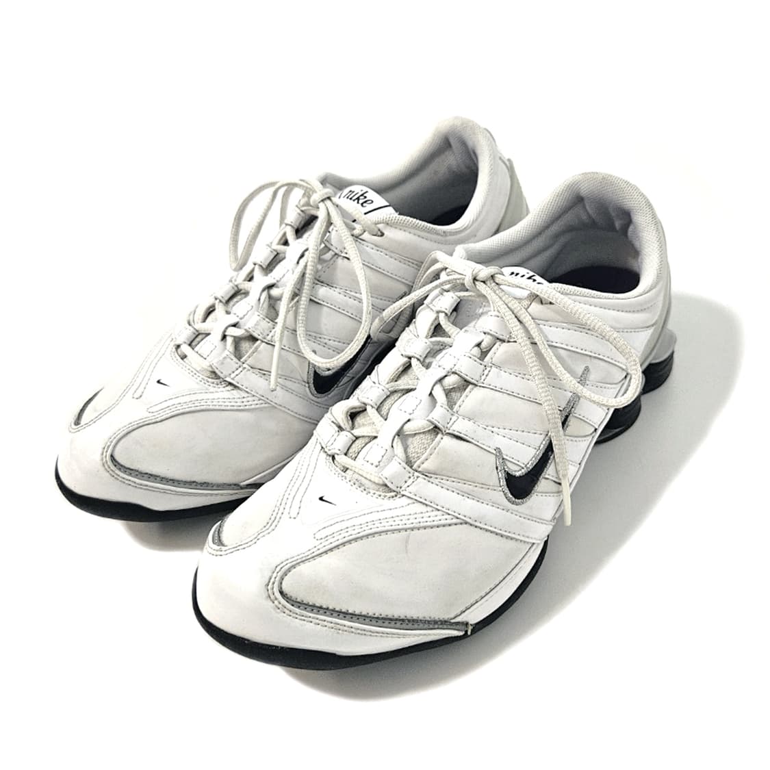 Nike Shox NZ in white (2000s) size: 265 2000년대 발매된 나이키 샥스 NZ입니다. 부드러운 누벅과 합성소재가 사용되었으며, 레트로한 디자인과 함께 샥스 쿠셔닝 특유의 원기둥형 아웃솔의 조화가 매력적인 제품입니다. 전체적으로 자연스러운 사용감이 존재합니다. used with no major flaws price: 130,000 won