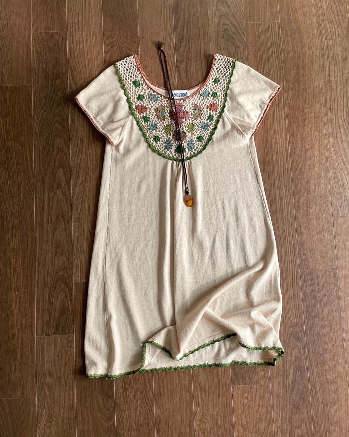 [color] ivory [size] 40 [fabric] 코튼 100% [measurement] 어깨 - 팔 23 가슴 40 총장 86 [model size] 165 / s-m * 빈티지한 분위기의 니팅 포인트 * 루즈하게 떨어지는 실루엣의 원피스
