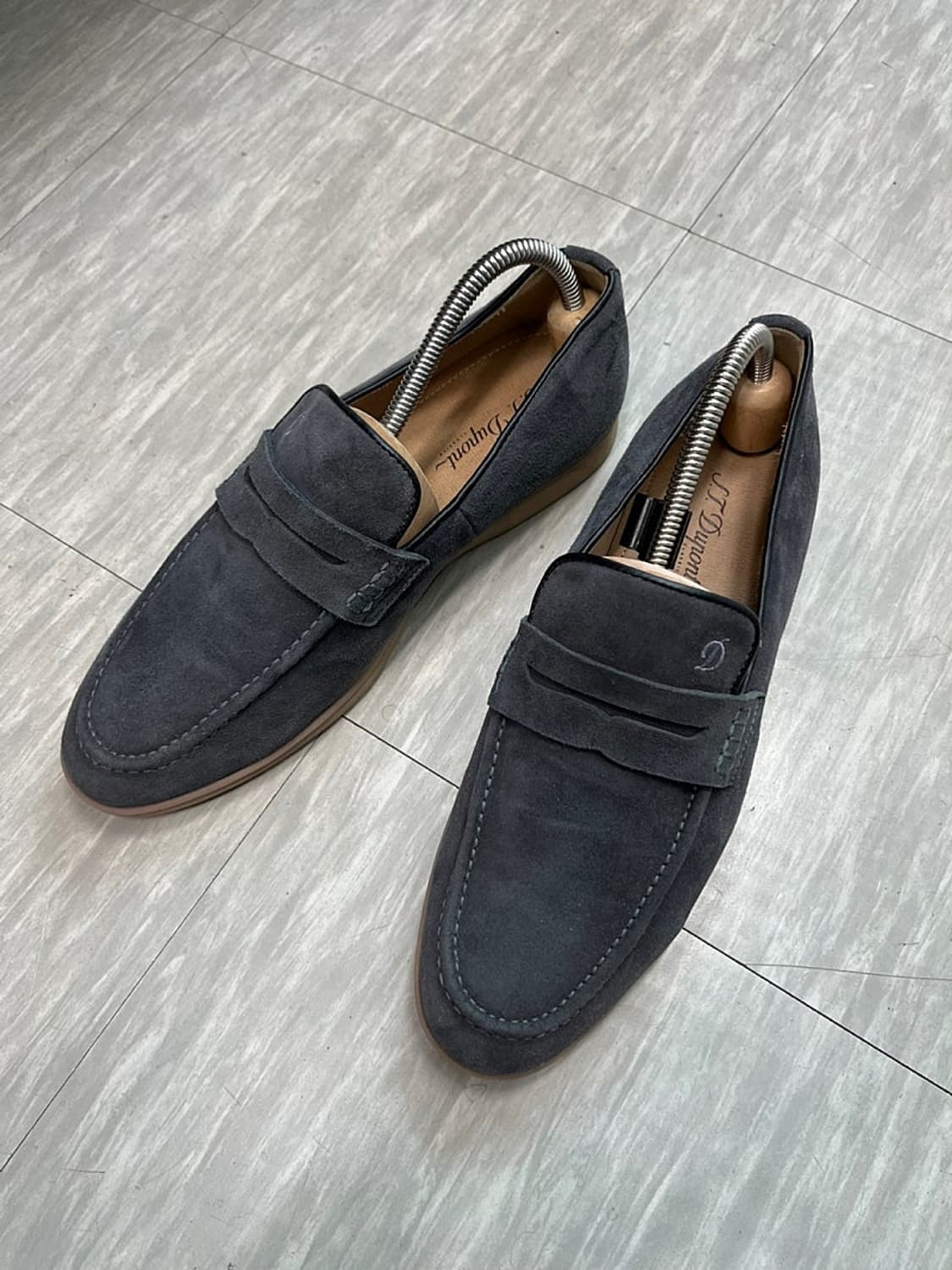 듀퐁 사이즈 40 ( 255 권장 ) 정품 에스티듀퐁 이태리 스웨이드 로퍼 디자인과 색상 깔끔하고 이뻐요 어느옷이랑도 매치하기 좋아요 염소가죽 스웨이드 디테일굿 40만대 완판 닳음없이 상태 최상급 고가의제품