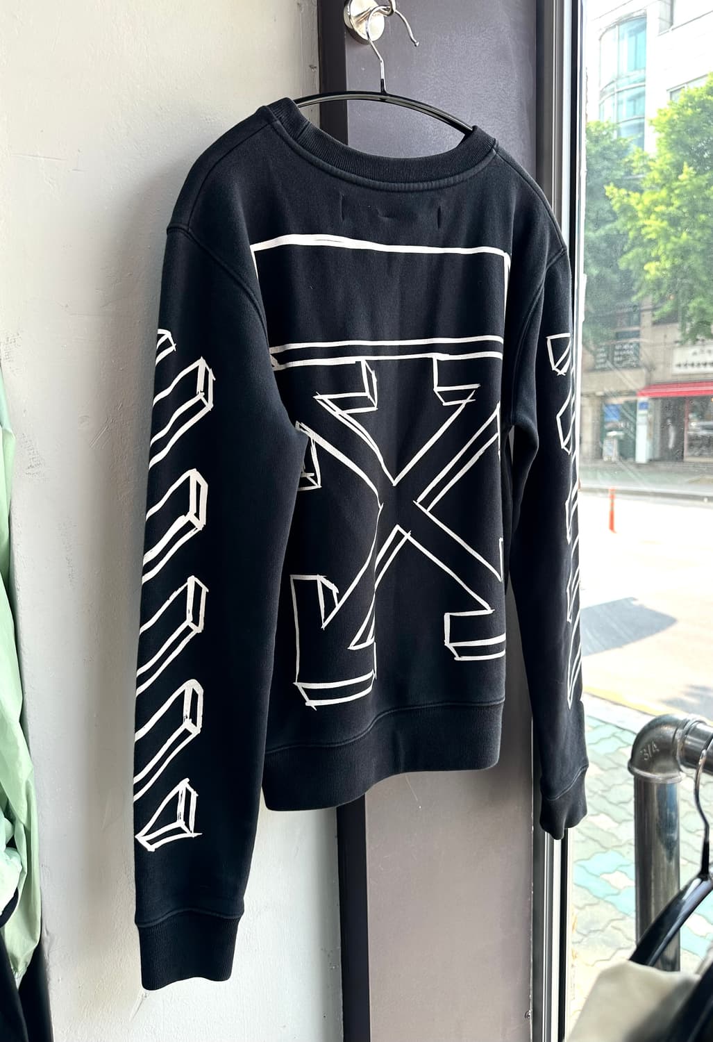 오프화이트 스케치 애로우 맨투맨 사이즈 XS (단면 52 / 총장 63cm) 정품 오프화이트는 ‘예술과 일상, 하이패션과 스트리트웨어의 '경계 해체’를 철학으로 삼습니다. 이 맨투맨은 2019 시즌을 대표하는 아트워크 ‘스케치 애로우’를 백 프린트로 담아, 브랜드의 실험성과 위트를 고스란히 드러냅니다. 입체감을 살린 손그림 느낌의 프린팅과 소매의 다각도 그래픽은 단순한 로고 플레이를 넘어선 조형적 개성이 느껴집니다. 활용도 높은 블랙 컬러, 유연한 코튼 원단으로 실착감 또한 우수합니다. 가품 시 보상합니다.