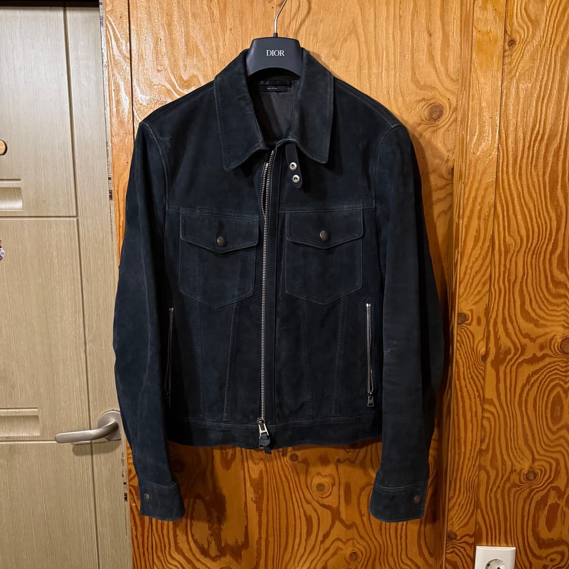 톰포드의 아이코닉중 하나인 스웨이드 자켓 입니다. 100% 카프 래더 소재에 안감은 60커프로, 40 코튼 소재 입니다. 1180만원 주고 샀었습니다. 표기 52 사이즈 - 대략적인 실측 어깨 45cm / 가슴 55cm / 팔 65cm / 총장 63cm 쯤 대략 나오네요. 국내 100 입는 제게 좋았으며 10회 정도 입었습니다. 전반적으로는 양호하나 넥쪽에 사진 보시듯 사용감이 조금 있는 편 입니다. 제 생각에는 그냥 입으셔도 크게 무리는 없지 싶지만 부분적으로 스웨이드 케어 받으시거나 가죽 클리너 정도로만 케어 하시구 입으셔도 크게 무리 없지 싶어요~