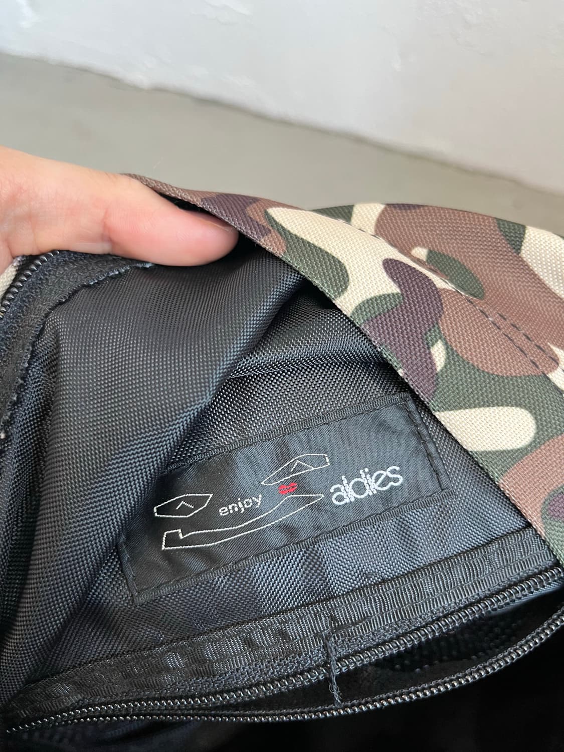 aldies JPN 카모플라쥬 백팩 - 일본 aldies사의 카모플라쥬 백팩 - 약간의 사용감 외 좋은 컨디션 폭18 가로28~32 세로41 250531