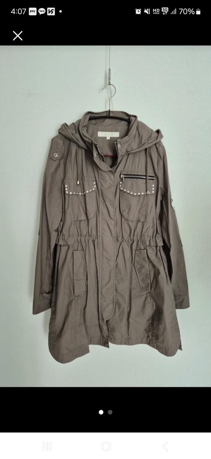 에고이스트 후드 야상 점퍼입니다. 팔 부분에 패치 포인트가 예뻐요! 세탁 완료 상태 !