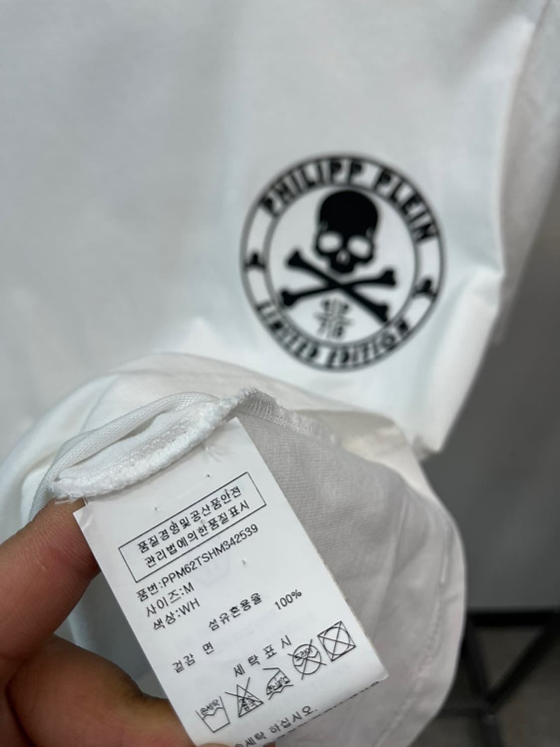 필립플레인 *사이즈 M ( 95 권장 ) 총장 70 가슴 49 정품 필립플레인 스컬패치 반팔티 화이트 가슴 스컬 백로고 심플디자인 신품급