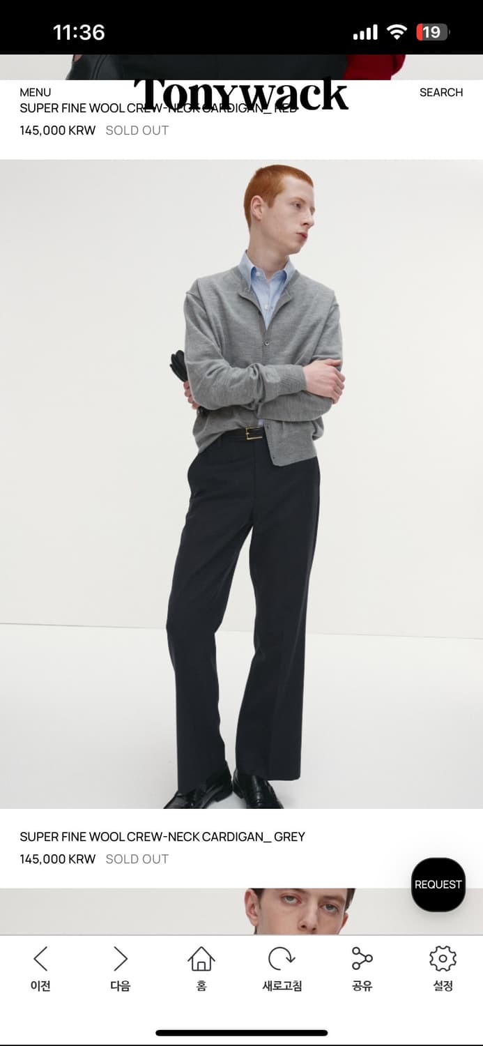 토니웩 슈퍼파인 메리노울가디건 그레이 L