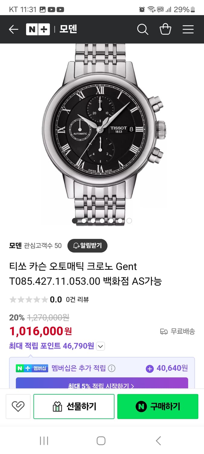 티쏘 르로끌 파워매틱 80 시계 판매합니다