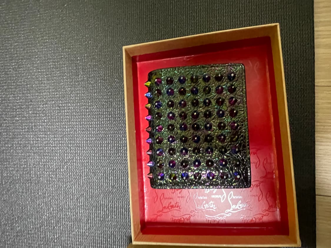 Christian Louboutin 크리스찬 루부탱 스터드 반지갑 ✔ 브랜드의 아이코닉 감성이 담긴 고급 스터드 지갑 루부탱 특유의 감각적인 디자인과 강렬한 개성이 돋보이는 지갑입니다. 올블랙 베이스에 컬러풀한 피라미드 스터드가 포인트로, 유니크하면서도 고급스러운 분위기를 연출합니다. ⸻ 🔸 제품 특징 • 브랜드: Christian Louboutin (크리스찬 루부탱) • 모델: 스터드 장식 반지갑 • 소재: 고급 가죽 (패턴 텍스처 + 멀티컬러 스터드) • 구성: 지갑 본품 + 정품 박스 포함 • 색상: 블랙 베이스 / 멀티컬러 스터드 • 사이즈: 가로 약 11cm × 세로 약 9.5cm × 폭 약 2.5cm (실측 오차 ±1cm) ⸻ 🔸 수납 구성 • 카드 슬롯 x4 • 지폐 포켓 x1 • 동전지갑 (스냅버튼) x1 • 추가 포켓 x2 ⸻ 🔸 상태 • 상태: ⭐ 미사용 또는 A급 상태 (사진 참고) • 외관/내부 모두 깔끔하며 스터드 손상 없음 • 박스 포함 (정품 패키지) ⸻ 🔸 스타일링 TIP • 유니크하면서도 세련된 스타일을 선호하는 분께 추천 • 스트릿 패션, 올블랙 룩, 포인트 악세사리로 활용도 높음 • 선물용으로도 좋은 고급 브랜드 제품 ⸻ 💡 중고 제품 특성상 교환/환불이 어려우니 신중한 구매 부탁드립니다. 추가 사진 요청이나 상태 문의는 언제든지 DM 주세요