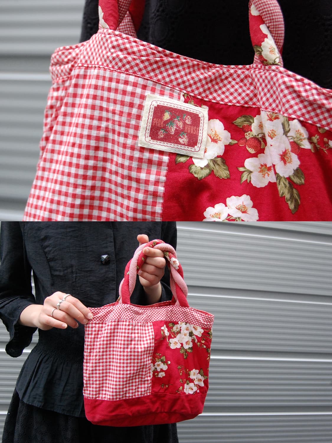 SIZE : 가로 29 세로 21 PRICE : 40,000 ⠀ - Brand : Pink house - 패치워크 디자인으로 제작된 핸드백입니다. 레드 컬러 베이스의 귀여운 패턴들과 핑크하우스 로고, 꽈배기처럼 연출된 끈이 매력적이네요. 안감 퀄팅으로 튼튼하게 제작되었습니다! 손잡이 안쪽 약간의 때탐 외 좋은 상태 유지중입니다.