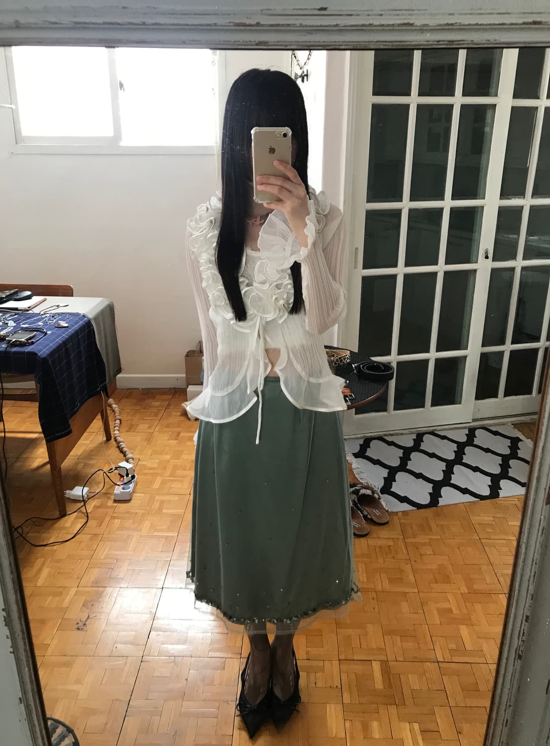 - 끈으로 여닫는 디자인 •실측 (cm) 어깨 34 / 가슴 42 / 소매 58 / 총장 51