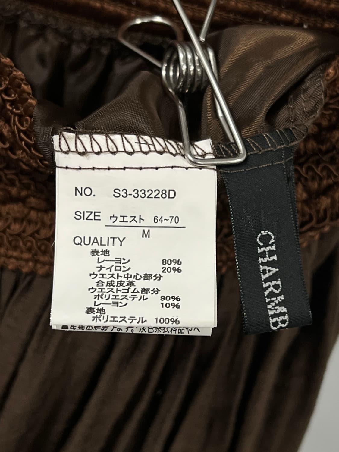 11388 허리34~50 총장84(cm) CHARMBERRYTIC 롱 스커트 입니다. 레이온80 나일론20 혼방 소재이며 벨트 디자인이 특징이네요. 허리 밴딩으로 신축성 존재합니다. 사이즈는 실측을 참고해 주세요!