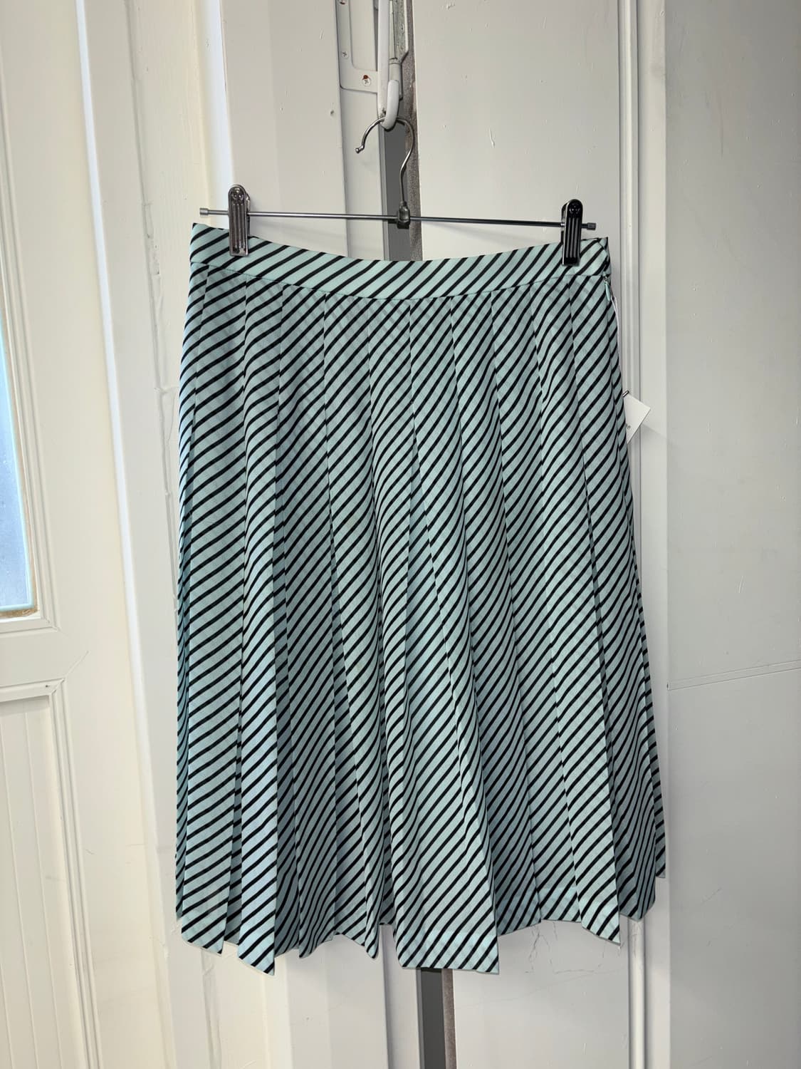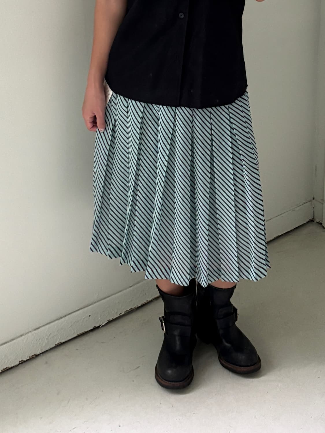 🥨 민트컬러 블랙 사선 스트라이프 플리츠 미디스커트 28-29inch 허리단면36 총장61 ₩25,000