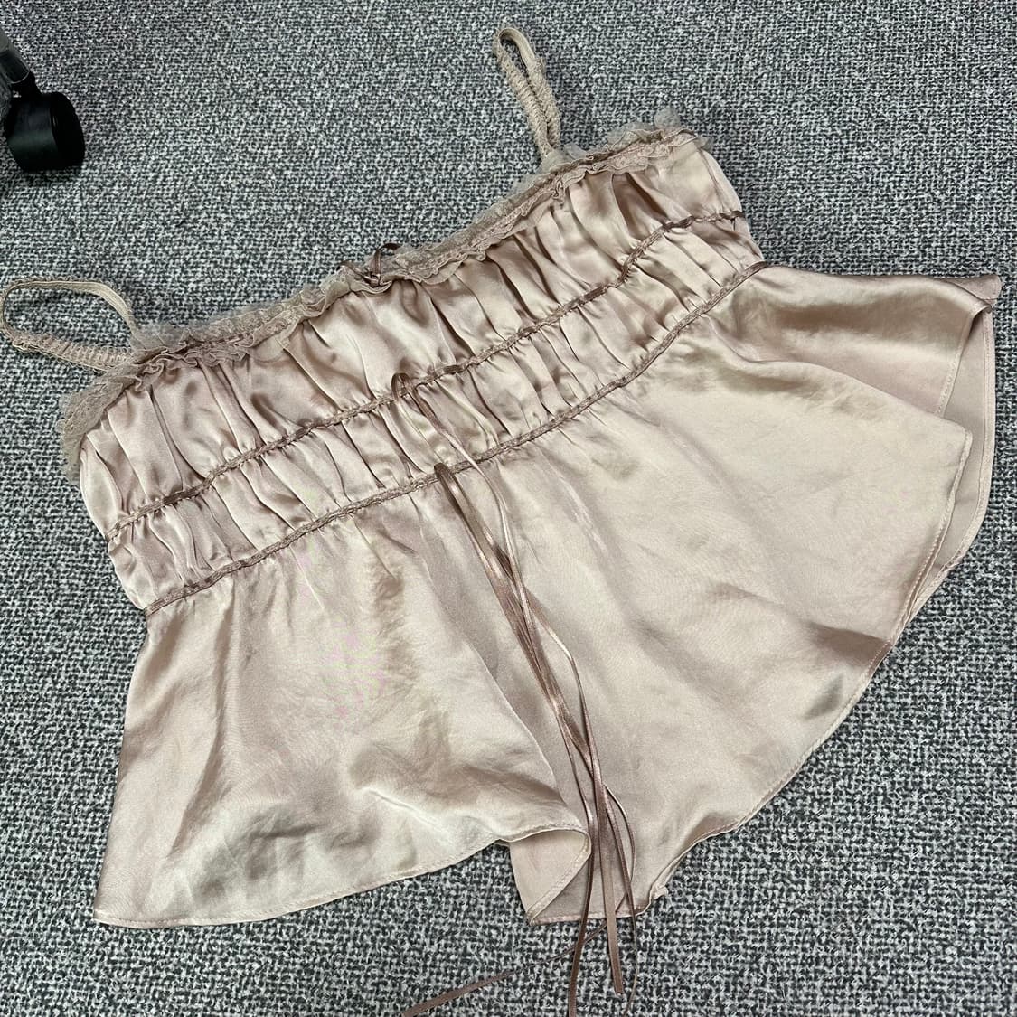 페인오어플레져 아리엘 에리엘 탑 블라우스 나시 상태 : 1회 착용 색상 : 새틴 핑크 사이즈 : M 원가 : 139,000