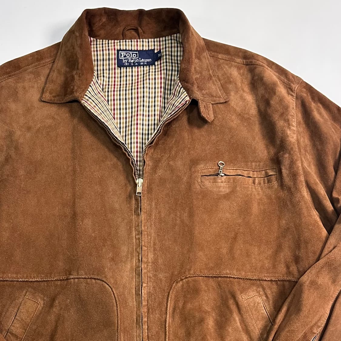 90s 폴로 랄프로렌 브라운 스웨이드 드리즐러 자켓 90‘s polo Brown Suede Drizzler Jacket - Price : ₩ 300,000 - Condition : 9/10 - Size : 표기 M 가슴 58 총장 66 어깨 52 팔길이 56 (100) 양가죽 스웨이드 재질, 드리즐러 형태의 포켓쪽 아웃라인과 짧은 총장감. 빈티지한 무드가 느껴지는 제품입니다.