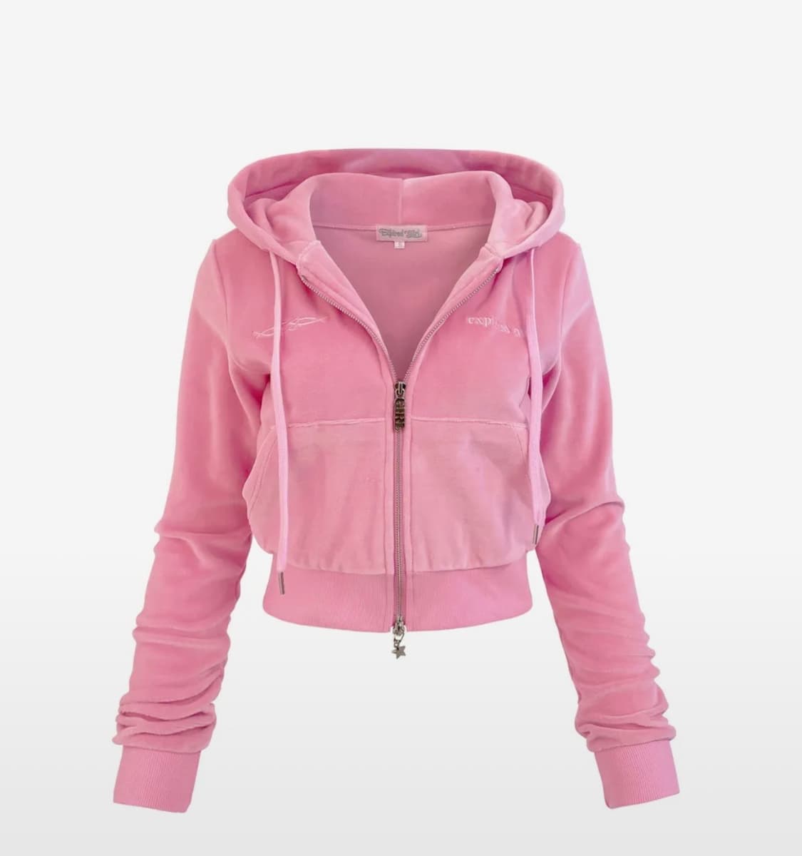 익스파이어드걸 벨로아 트랙 후드 집업 핑크