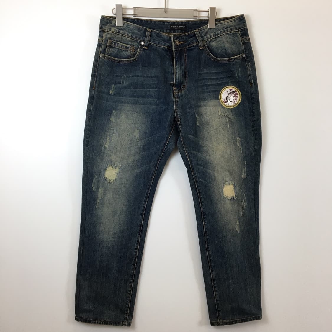 DETAIL - 브랜드 : 돌체앤가바나 - 소재 : 면 100% - 색상 : 중청 워싱 - 상태 : 9/10 - 상세설명 : 돌체앤가바나 블랙 플레이트 데님진 입니다. SIZE -택사이즈 : 36 -권장사이즈 : 35-36 실측 사이즈 총길이 : 95cm 허벅지단면 : 28cm 밑단단면 : 18cm 밑위 : 25cm 허리단면 : 46cm