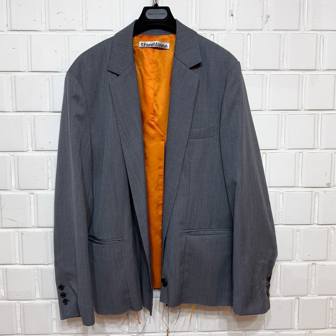 -Stand Alone Cut Blazer Jacket 국내 에크루에 입점되어 있는 인기 브랜드 스탠드얼론의 컷 디테일 블레이저 자켓 입니다! 러프한 마감과 특유의 오버핏한 실루엣으로 남녀 모두 이쁘게 맞는 핏이 만족스러운 흔히 않은 모델입니다. -표기사이즈: 2 실측(단면): 가슴 61 어깨 48 기장 72 -컨디션: 전반적으로 상태 양호합니다.