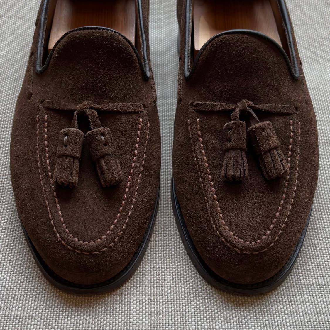 ** 오프라인 쇼룸 정보 ** -주소 : 인천 중구 중산로 90 -오픈 : 12시 - 21시 -휴무 : 매주 화요일 Alfred Sargent 영국 노샘프턴셔에서 제작된 Alfred Sargent 홀번 스웨이드 태슬 로퍼입니다.!! (Made in ENGLAND) -STYLE : RIPLEY -COLOR : BROWN -UPPER & LINING : LEATHER -GOODYEAR WELT -OUTSOLE : SINGLE OAK LEATHER 상자와 슈트리 없는 로퍼 단품입니다. 알프레드 사전트 슈즈는 1899년부터 영국 최고의 구두 제작을 상징해 왔으며 세계적으로 유명한 영국 구두 제작 지역의 중심지인 노샘프턴셔에서 120년 이상 최고급 소재만을 사용하여 완벽한 기준에 맞춰 수작업으로 제작해 온 오랜 전통의 영국 브랜드입니다. 이제는 더 보기 드문 개체로 범용성과 활용성을 갖춘 브라운 컬러 홀번의 고급 스웨이드 가죽 소재로 제작되었으며 정교한 굿이어 웰트 제법, 정갈한 U팁 더블 스티치와 태슬, 깔끔한 파이핑 마감 디자인에 웰메이드 제품으로 캐주얼 또는 드레시한 무드 등 다양한 코디에 활용하기 좋은 멋진 아이템입니다.!! 잘 관리되어 가벼운 사용감 외에 우수한 컨디션의 제품이며 슈케어 완료되어 바로 착용하실 수 있습니다.!! 표기 사이즈 UK 6 1/2 EX , 보통 발볼 기준 국내 260mm 그리고 살짝 넓은 발볼 기준 255mm 에 적합한 사이즈입니다. ** 배송비 무료 !! ** 모든 상품은 기본적으로 케어가 완료된 상태입니다. ** 좀 더 디테일한 이미지와 설명이 필요하시면 편하게 문의주세요. ** 주문 결제 시 택배는 우체국 택배로 발송됩니다. ** 예민하신분은 더 신중히 확인해주시고 교환, 환불은 어려운 점 참고 부탁드립니다. #Alfredsargent #Ripley #Holbornsuede #Tasselloafer #Goodyearwelt #Singleoakleather #Browntasselloafer #알프레드사전트1899 #홀번스웨이드태슬로퍼 #굿이어웰트 #싱글오크레더 #브라운태슬로퍼 #스웨이드태슬로퍼 #스웨이드로퍼 #태슬로퍼 #브라운스웨이드로퍼 #브라운로퍼 #태슬스웨이드로퍼 #슬립온태슬로퍼 #스웨이드슬립온로퍼