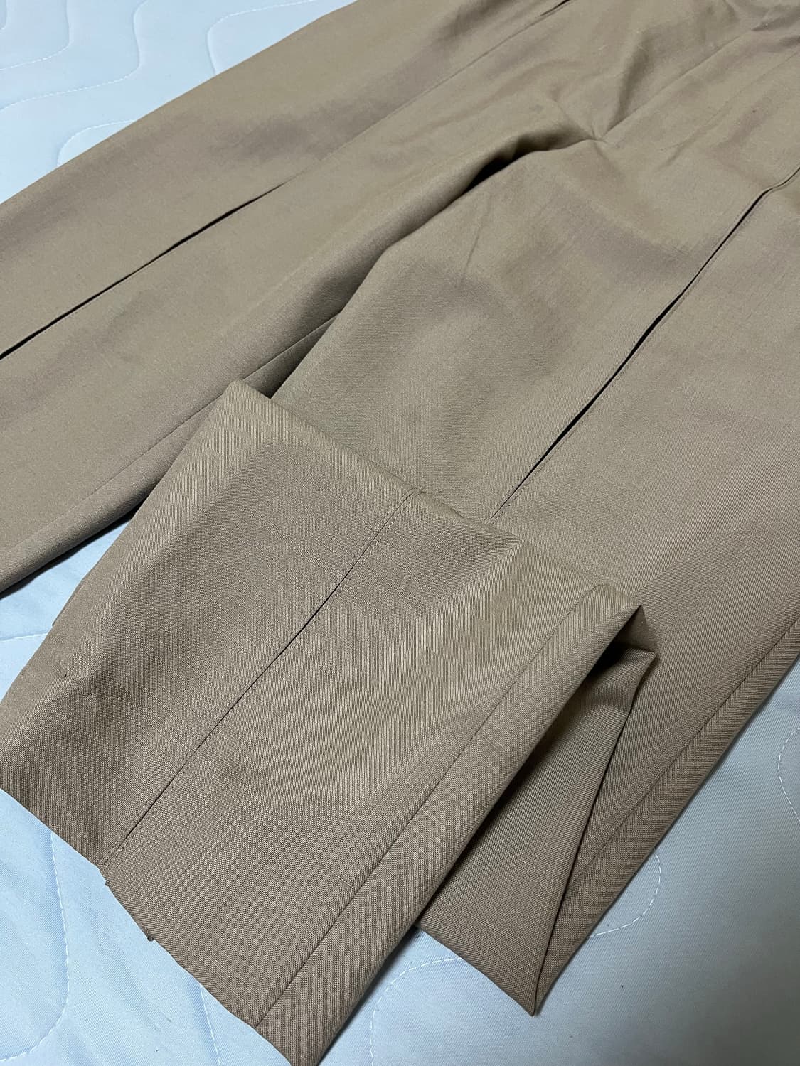 irenisa 22SS double center pleats pants beige 1 size 허리단면32~39 총장95 밑위30 허벅지단면28 밑단단면19 [측정 기준에 따라 달라질 수 있습니다.] 8/10 (3-5번째 사진) 얼룩 존재. 실제론 티 거의 안 납니다. 실제 색상은 3번째 사진과 가장 흡사. (요지야마모토 X, 이레니사 O) 요지야마모토 패턴사 출신
