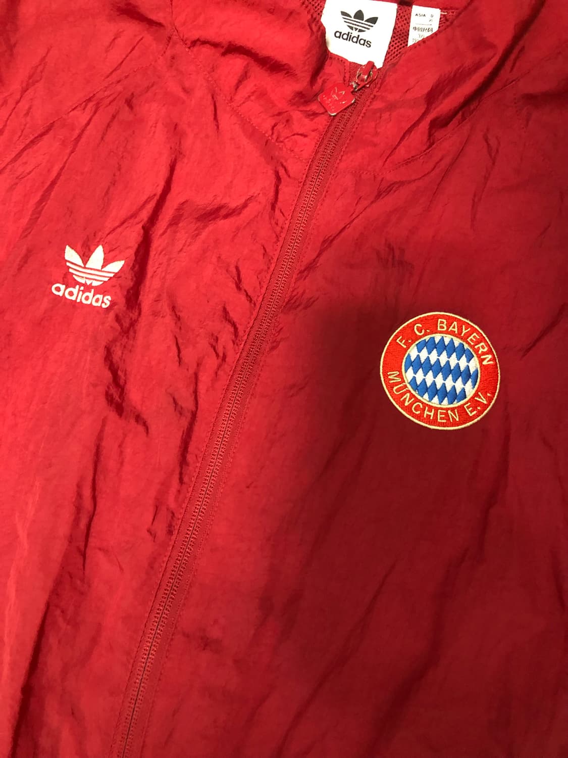 레트로한 디자인의 바람막이 자켓 실사용 많지 않고 깔금한 컨디션이나 팔부분 약간의 데미지 존재합니다 자세히 봐야 보이는 구멍이라 착용하는데는 문제없는 컨디션 어깨 래글런 가슴 67 소매 78 총장 72