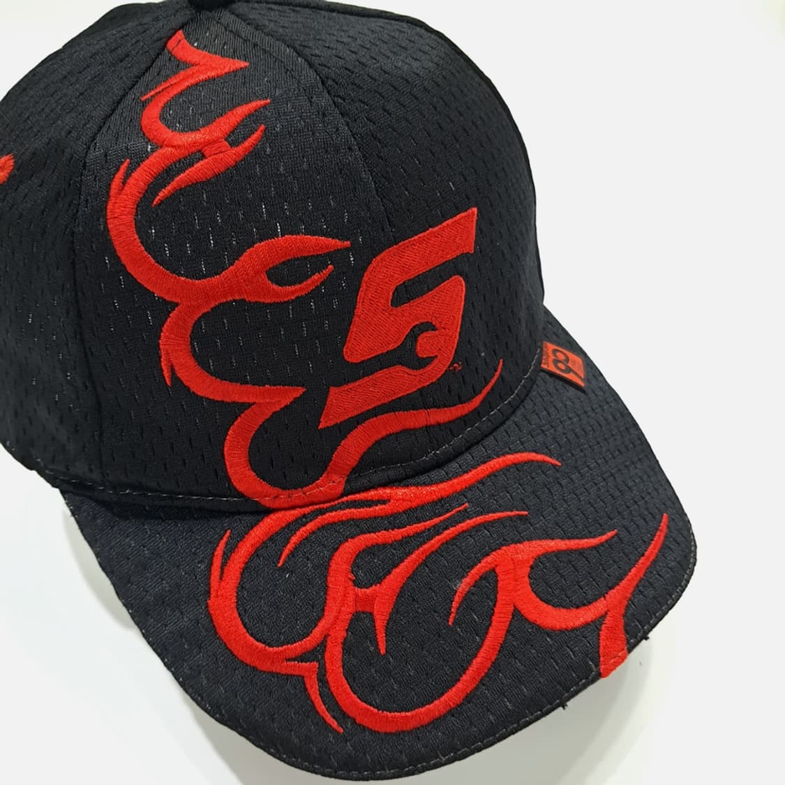 K-Products 90th 주년 블랙/레드 플레임 자수 볼캡 P843