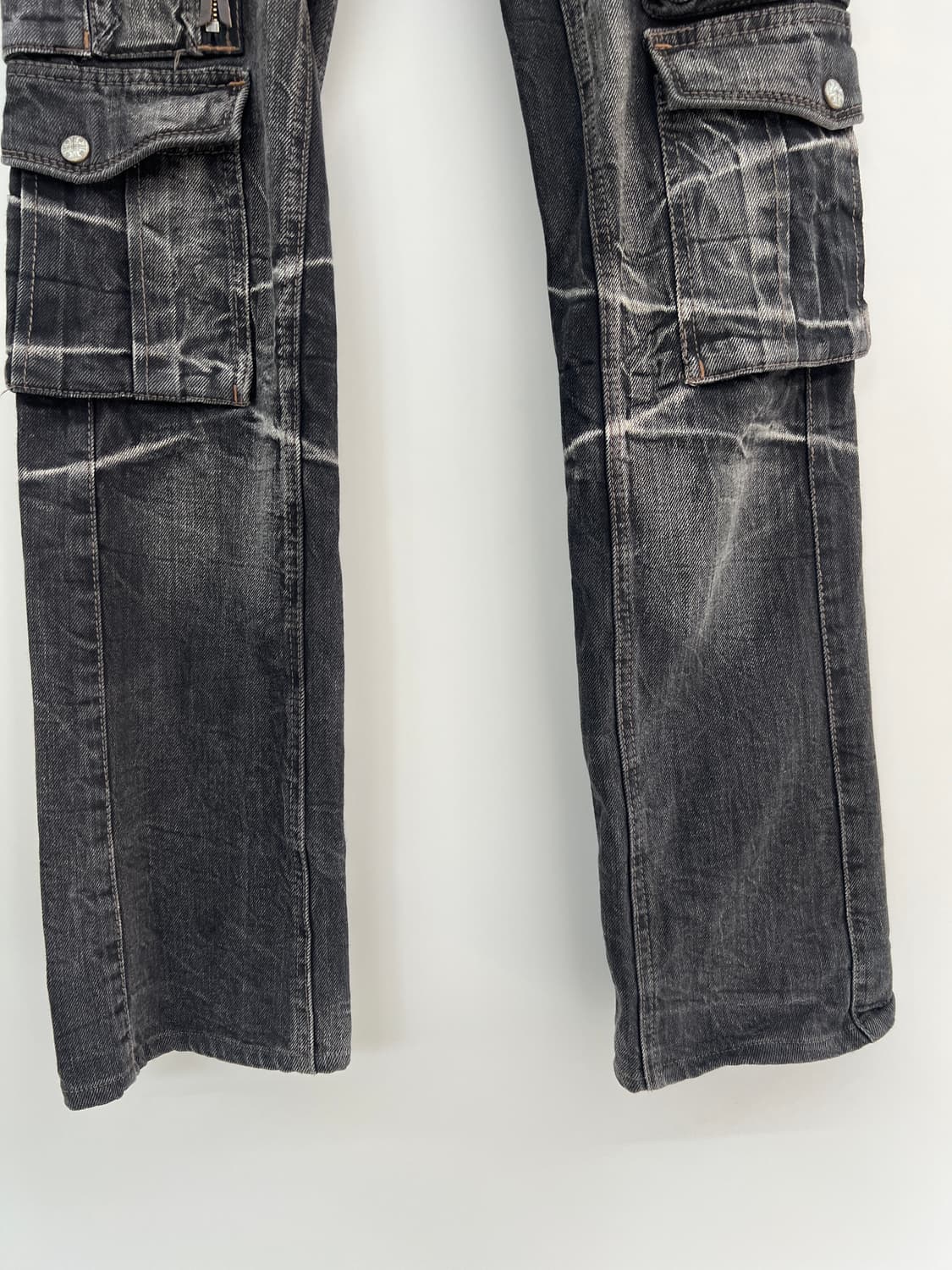 • size : 29 inch / 39 27 26 19 99 ( 허리 밑위 허벅지 밑단 총장 ) - 워싱이 짙게 들어간 카고팬츠 - 멀티포켓 디테일 - 슬림 스트레이트 실루엣 • 연남동 빈티지샵 노이지웨어, 인스타그램 @noeasywear